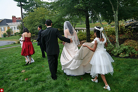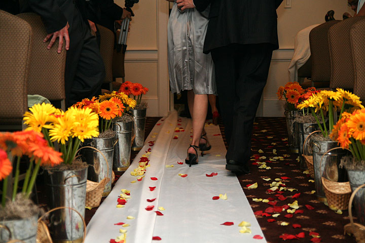 everyone was asked to be at the golf club no later than 3pm for the 3:30 wedding. my mother had to work, so it was just my father, my sister, my aunt (who was also a member of the wedding party), and myself attending the wedding. we were the first people to arrive at 2:30. the groom didn't arrive until 3:00 and the bride didn't arrive until half an hour later. jerry had to make a critical decision whether to hold the ceremony outdoor or bring it inside. he decided indoors which turned out to be a wise choice since the sky opened up soon afterwards with a brief torrential downpour. the ceremony didn't actually start until well after 4:30pm.