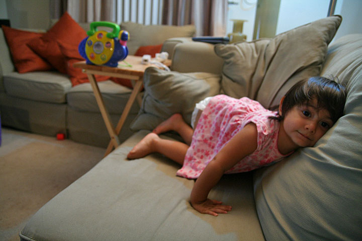 clarissa bounced around the living room, occasionally clutching a piece of food in her tiny fist, or maybe a toy ready to be hurled. she was climbing, walking, kicking, dancing, and occasionally yammering about in baby talk (which sounds like english or portuguese, depending on who you ask). i was waiting for her to tire out but she seemed inexhaustible. when punam showed up (raving about youtube and talking sports) clarissa calmed down a bit, before catching a second wind and ran around dousing the area with milk from her bottle. if only baby energy can be collected and sold, people wouldn't need caffeine anymore to stay awake and active.