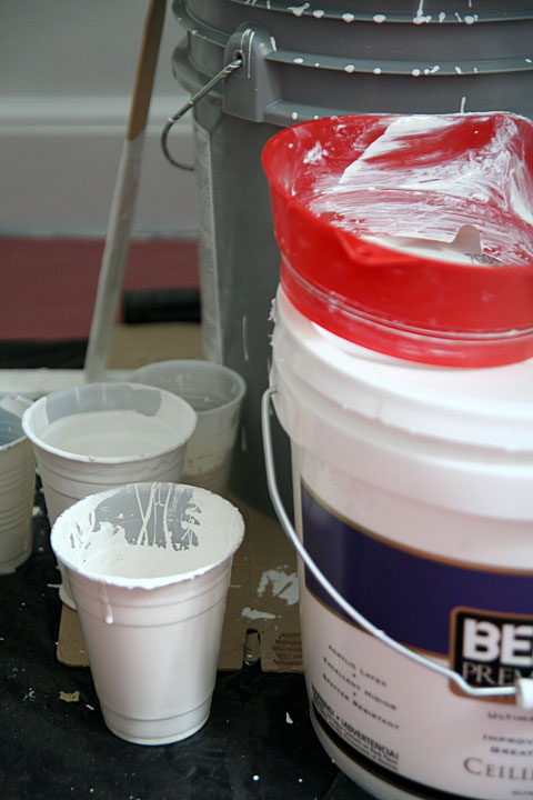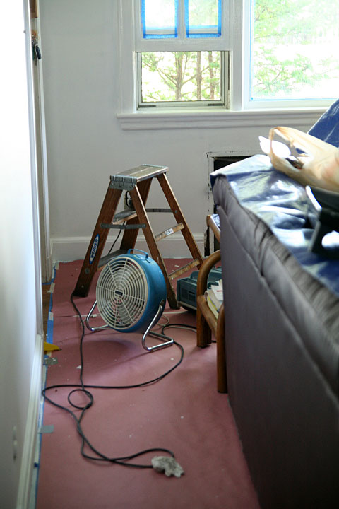 i patched up some missed areas on the ceiling with the wrong paint: semi-gloss latex supposedly for the trims instead of the correct flat ceiling paint. i wiped off as much as i could and started over. after i was done with that it was time to put on the first semi-gloss coat of oil paint on the windows and fireplace. my father took an hour to finish the fireplace before he left for work. i had the two windows which seem like an easy task but i didn't finish until well past 3pm (4 hours later).