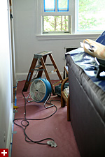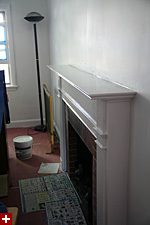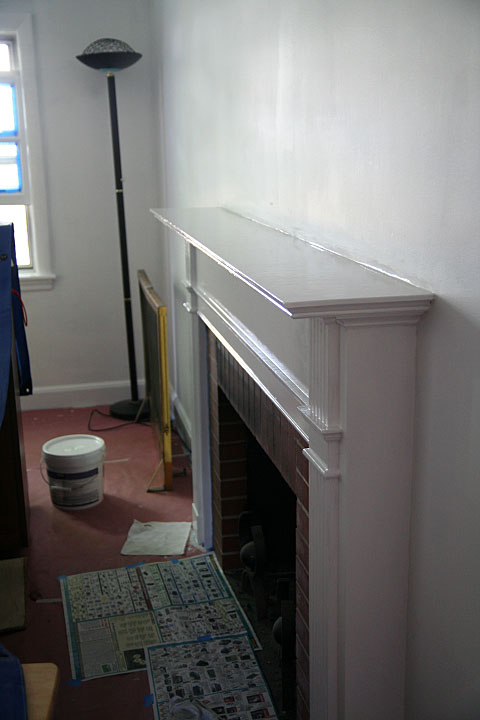 the semi-gloss topcoat was even more pungent than the oil primer we used yesterday. the whole room smelled like a heavily-trafficked gas station. oils are far messier than latex and even though i was careful, i ended up getting white paint all over my hands, on the bottom of my bare feet, and even in my hair. it made me wish windows had never been invented, so i'd never need to paint them with oils. however, by the time i finished, looking at the job my father did on the fireplace, i think oil paints are definitely worth it: when it eventually dries, it forms a hard, shiny shell, the difference in quality is obvious.