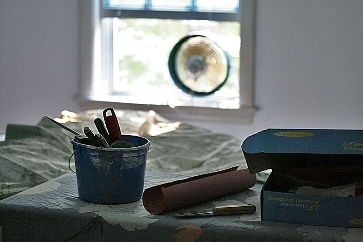 we didn't actually start painting until 1pm and didn't finish until almost 4 hours later, only completing my parents' bedroom before we ran out of primer. despite our prep work, the ceiling was in a rougher shape than we realized, with flakes of old paint stripping off onto the roller and many visible areas of bubbling. we may have to resurface the ceiling, or just live with the imperfections - knowing that in a few more years it'll start peeling again and will need to be repainted. while my father left for work, i finally ate the sandwich he brought me from the cafe before returning to cambridge.