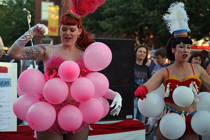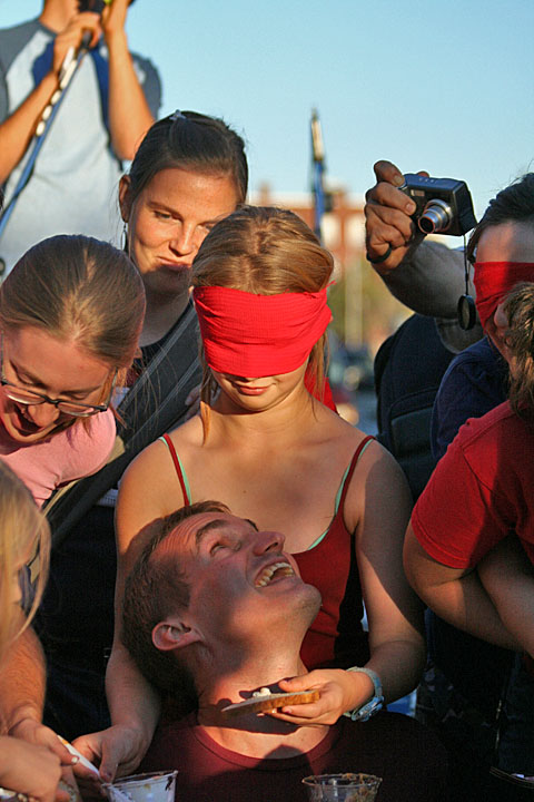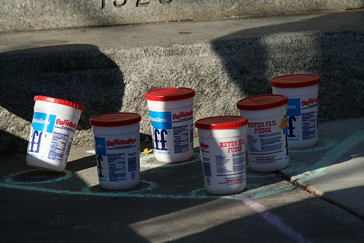 marshmallow fluff was actually invented in union square. so naturally somerville - the little town that could - had to have a festival this afternoon in honor of the local specialty, one that features live bands, burlesque dancers, eating contests, fluff sculptures, and a cooking competition.
