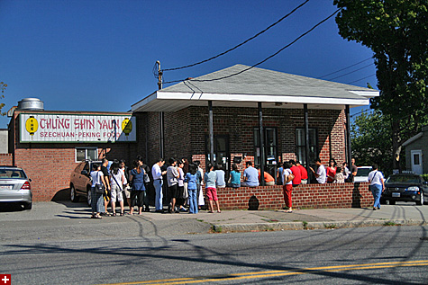 this morning i was in newton. jerry and olivia - back from their hawaiian honeymoon - invited all the wedding photographers out to dim sum and so we could give them copies of their wedding photos. out of the 4 photographers, only myself and roger managed to make it. we decided to meet at chung shin yaun, a popular local spot for chinese brunch.