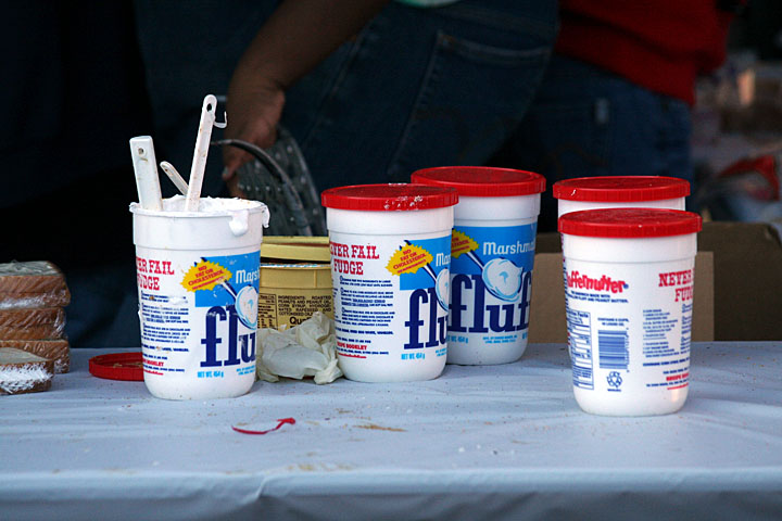 i must've had fluff before but it's been so long i can't remember. isn't it basically sort like melted marshmallow? when i roast marshmallows, isn't it basically fluff - molten fluff at that? although there were free samples at the festival, it never entered my mind to try it. i just wasn't in the mood to eat something so sickening sweet it could give me instant diabetes.