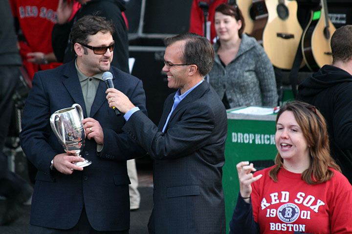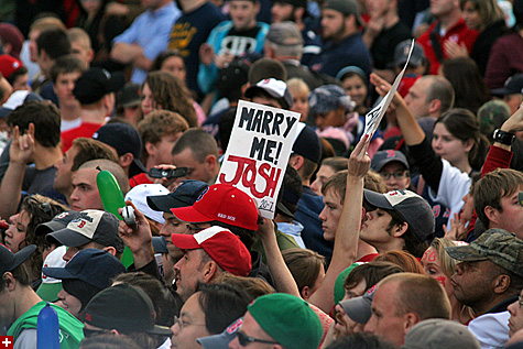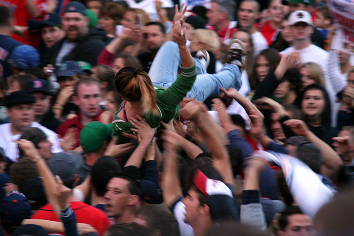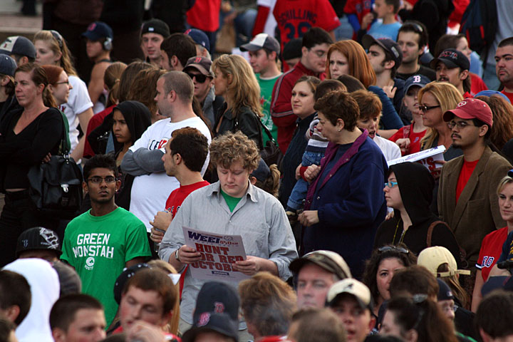 i went to the red sox rally, which was a major disappointment, because i was expecting to see more players, but other than papelbon, it was mostly B-list guys. "oh my god, he's so cute!" a girl behind me screamed as one of the players walked out on stage, which reaffirmed my suspicion regarding female sports fans, which is that they're really only there to check out the male athletes. i stayed for the entire 3 hours, standing the whole time until my back and my feet started to hurt. to add insult to injury, i got a $40 parking ticket as well. apparently there's no such thing as a guest parking permit in the city of boston - just specially designated 2-hour guest parking zones. worse, somebody was double parked and had trapped me; i honked my horn and revved my engine until they came out and moved their car.