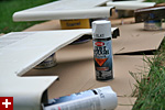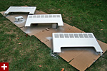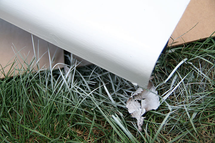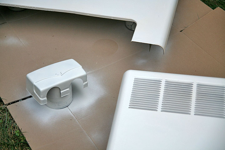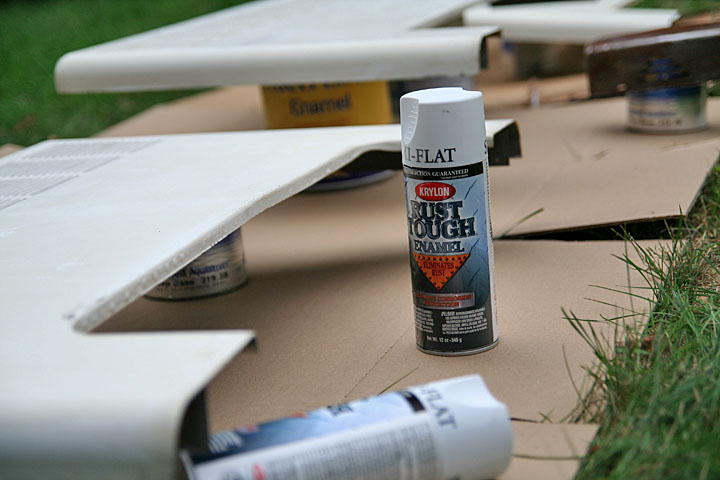 my father and i ended up spraying 5 radiator covers and a doorbell chime box. laying out on the backyard lawn to dry, they reminded me of a squadron of airplanes parked on a tarmac.