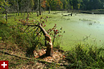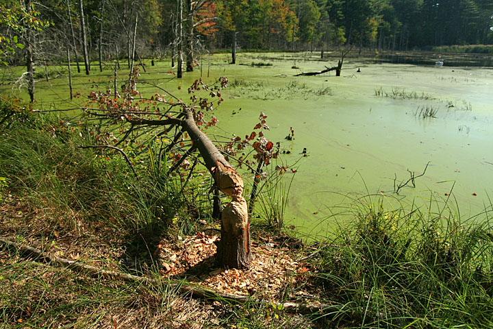 by the time i made it to the water, i'd put on my telephoto lens and was slowly creeping my way around so i wouldn't disturb any wildlife. unfortunately what i found were pretty boring: some canada geese and a trio of swans (which i thought was strange, swans usually come in pairs). i did notice some freshly felled trees that wasn't there before, the apparent work of beavers.