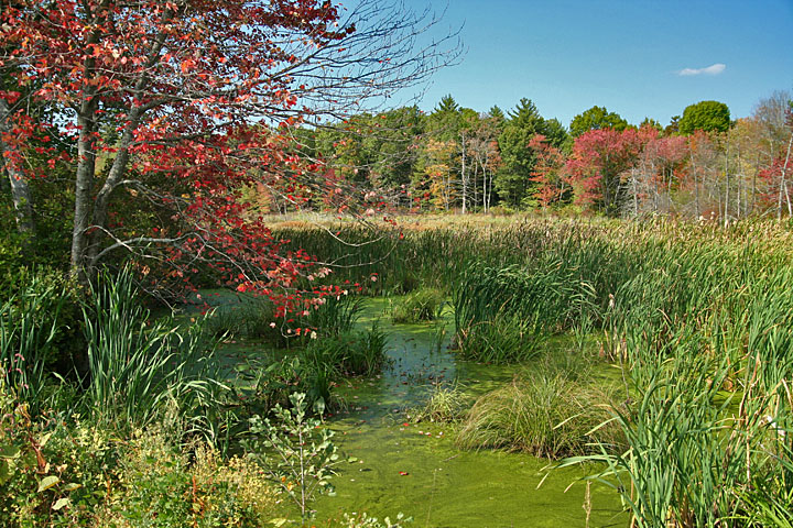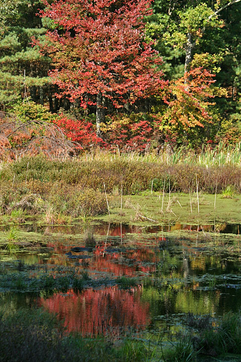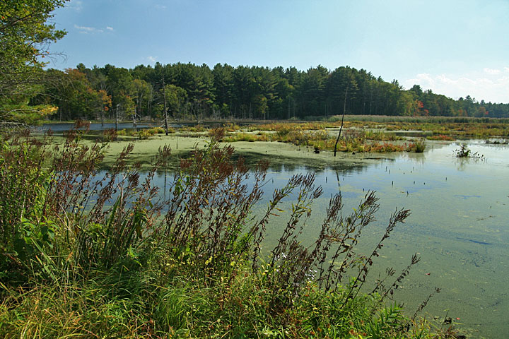 although there's no parking space along the eastern edge of the refuge, i still managed to find a spot for the motorcycle. it looked like they'd mowed the path leading into the wetland pond. afraid of mosquitoes, i'd worn my windbreaker jacket even though it wasn't buggy at all (the recent drought may have helped decrease the mosquito population). my last visit to assabet was back in early august, when i unsuccessfully tried to find the whereabouts of a secret bog patch.