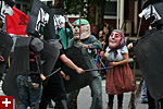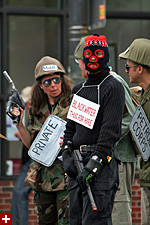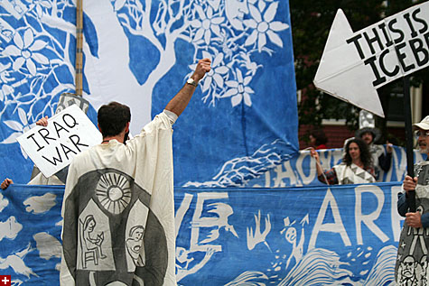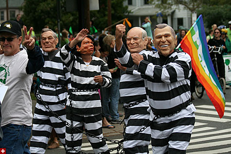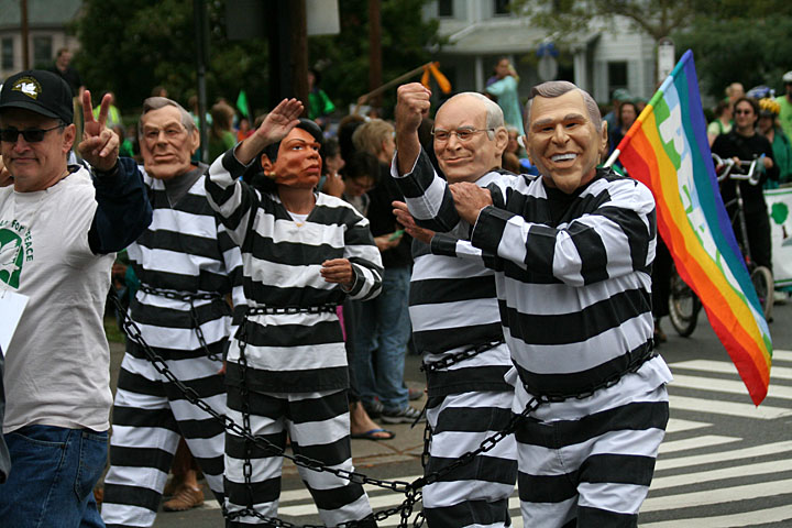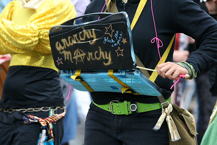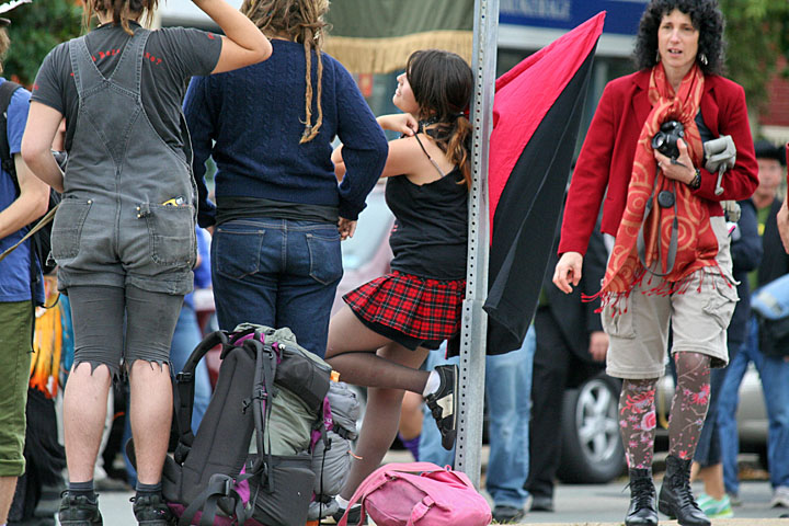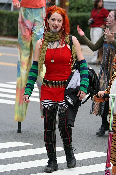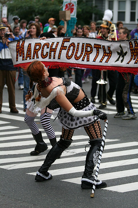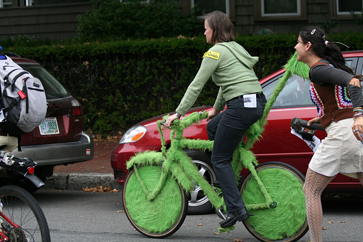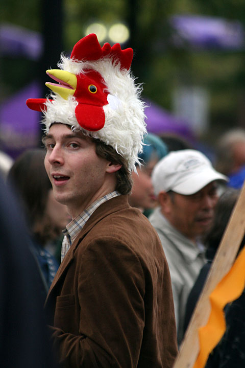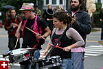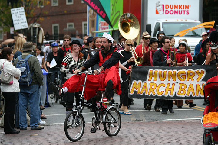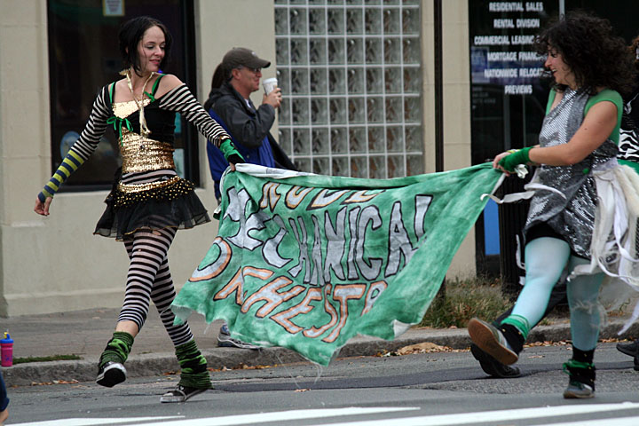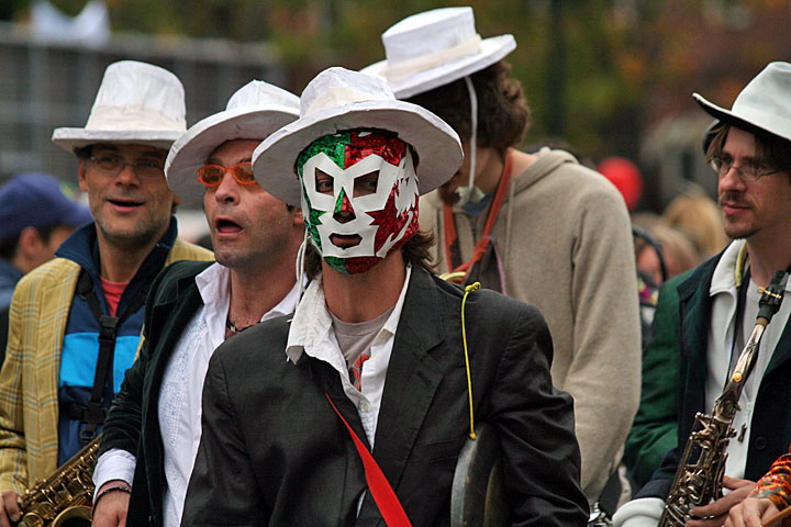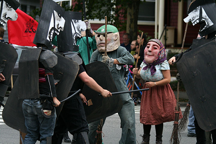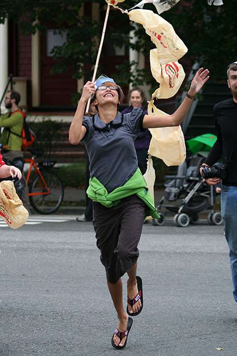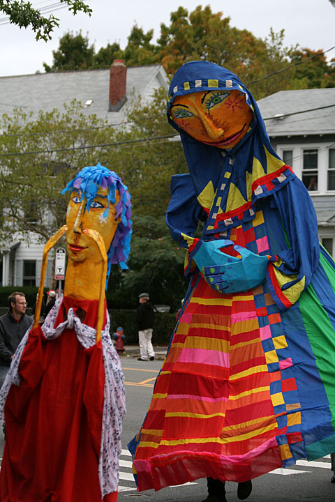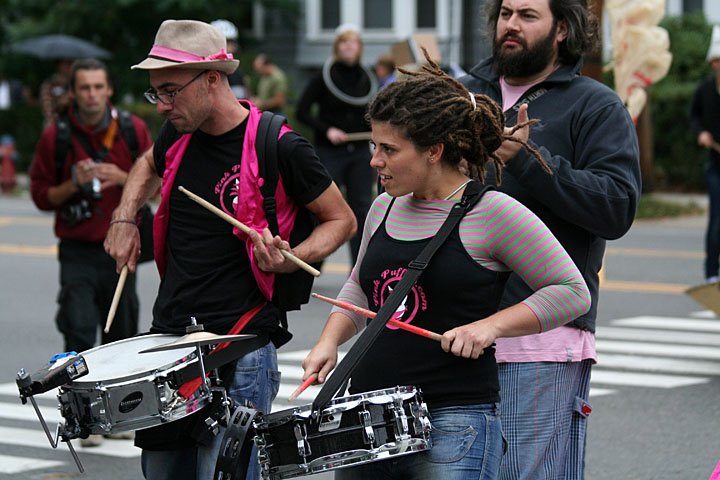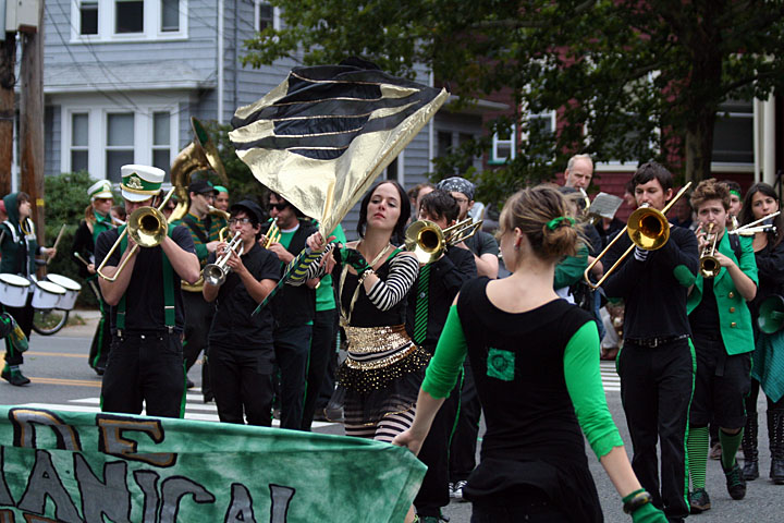 the honkfest parade route started in davis square, down elm street, down beech street, down mass ave, to harvard square. the weather was unexpectedly cold, about 20+ degrees (in the 60's) less than what it was yesterday. i positioned myself at the intersection of elm and beech, waiting for the procession to start. the marching bands were just a small part of the parade. what exactly was the message anyway? definitely some sort of protest, but it seemed like a parade for the sake of having one with no fixed agenda.