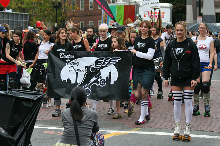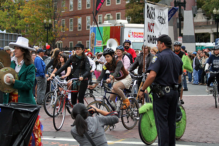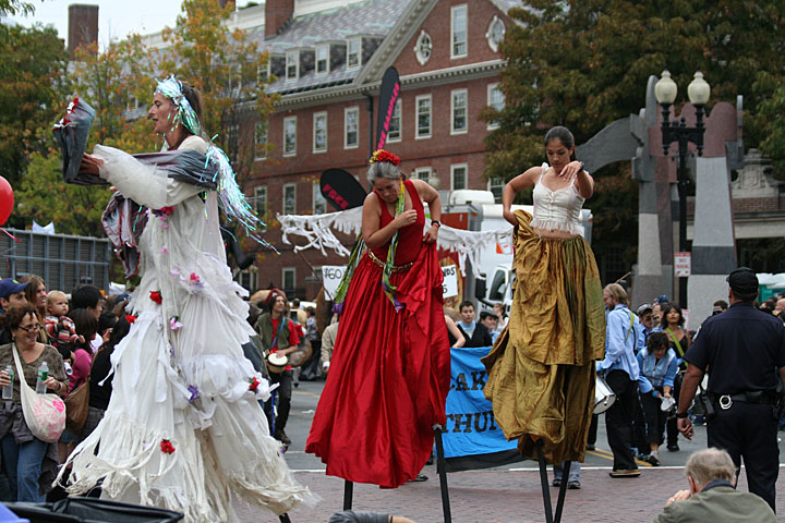 i then managed to walk ahead of the procession and wait for the parade to arrive in harvard square for my third viewing of the day. i was starting to wonder if anyone marching recognized me and thought it was weird seeing me everywhere. harvard square was crowded already because of octoberfest, but everyone seemed to be waiting for the parade to arrive, to bring in an influx of more people.