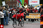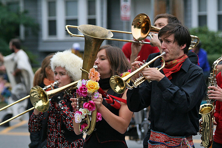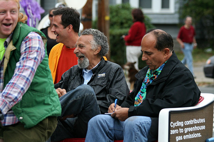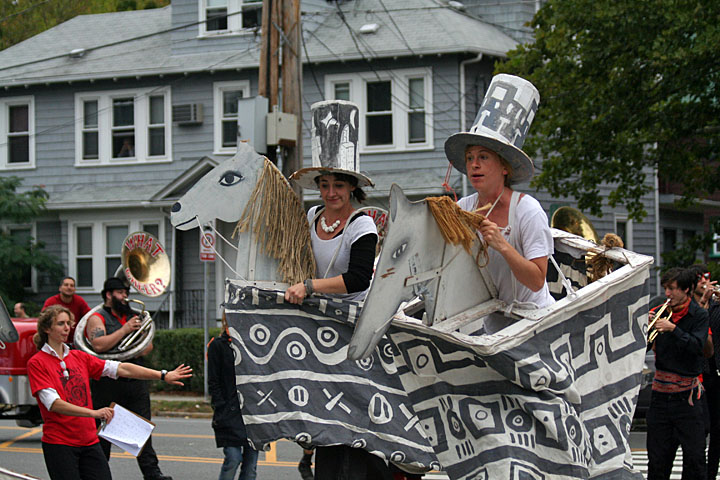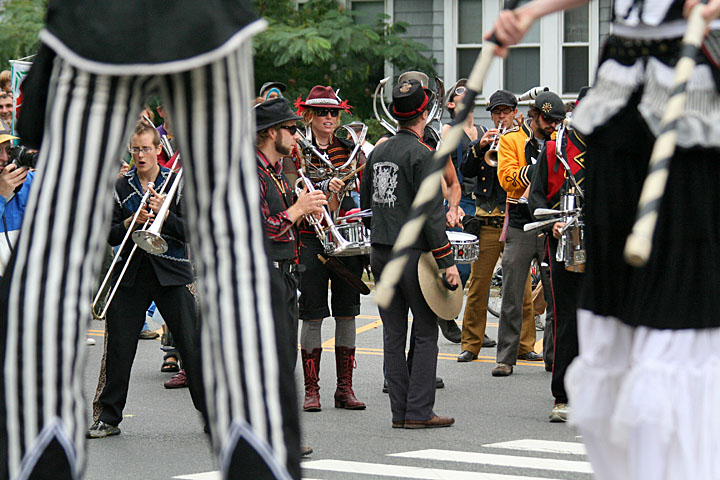 people with street front apartments had the best views from their windows. mass ave going inbound to harvard square from porter square was completely blocked off for the procession. people who knew nothing about honkfest were drawn in as casual spectators. as far as i know, it's the only parade route that goes from davis square to harvard square (a distance of less than 2 miles), one of these rare occurrence of somerville-cambridge unity.