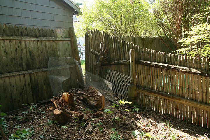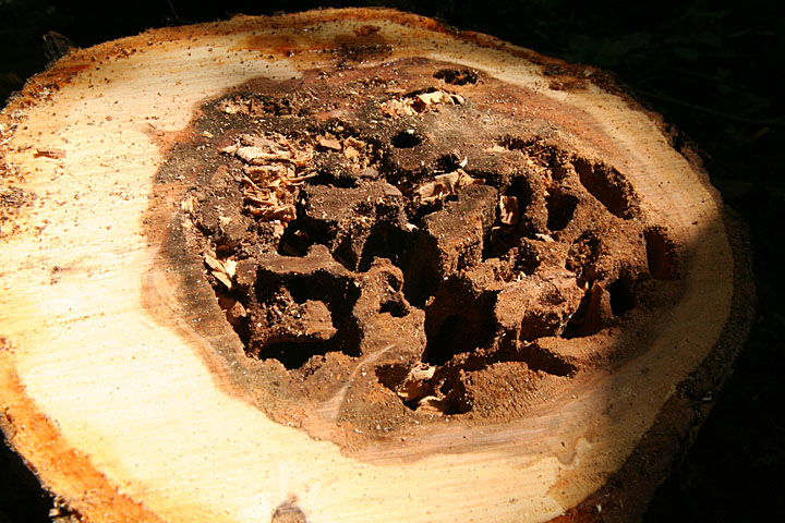 i think my father missed his life calling as a lumberjack; he seems to really love pruning and cutting wood with the chainsaw. as for the dead apple tree, it was infested with carpenter ants. shaking pieces of the trunk was like shaking ants out of a pepper shaker. i wasn't particularly worried even though carpenter ants have been known to bite when annoyed and these homeless ants were pretty angry.