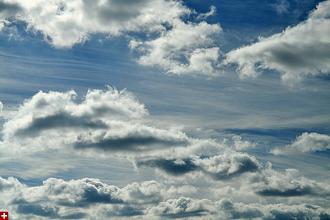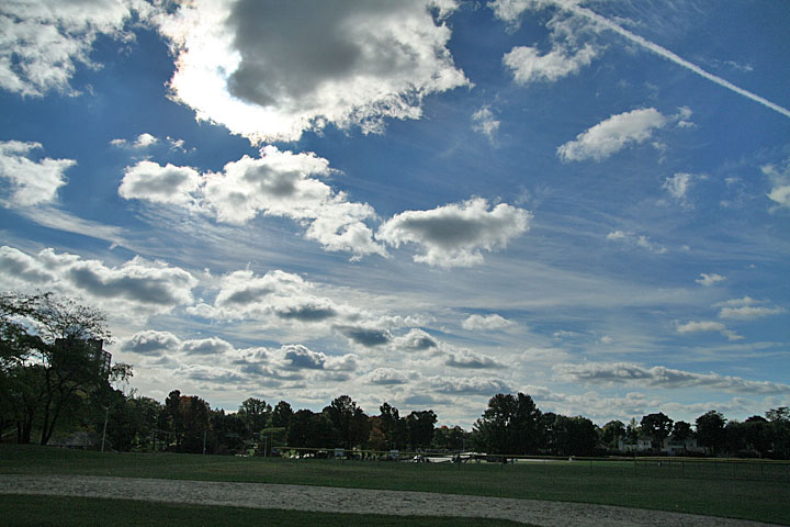 back to belmont this morning, to a shortened work week of painting preparation. morning clouds are the best, and the sky didn't disappoint today, showcasing a mixture of cumulus clouds, cirrus clouds, and contrails.