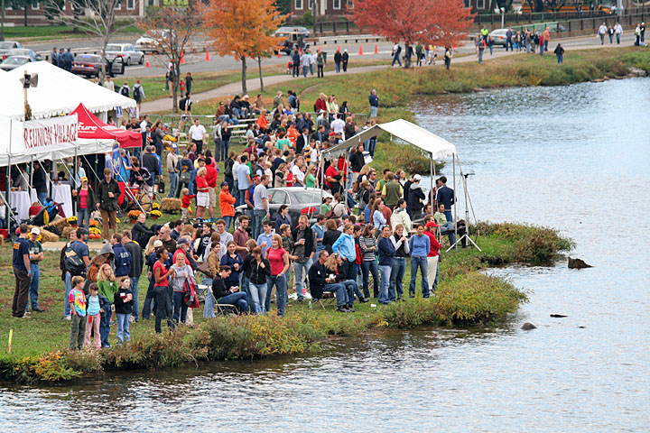 i know nothing about rowing. yet every year in autumn i go down to harvard square to see the head of the charles. i hung out at the weeks footbridge this time around. they say something like 300,000 people descend upon cambridge and boston to attend this international regatta weekend. unlike past years, today was surprisingly warm, so my hands didn't freeze. however, the sky was overcasted until later in the afternoon when the clouds started to clear up.