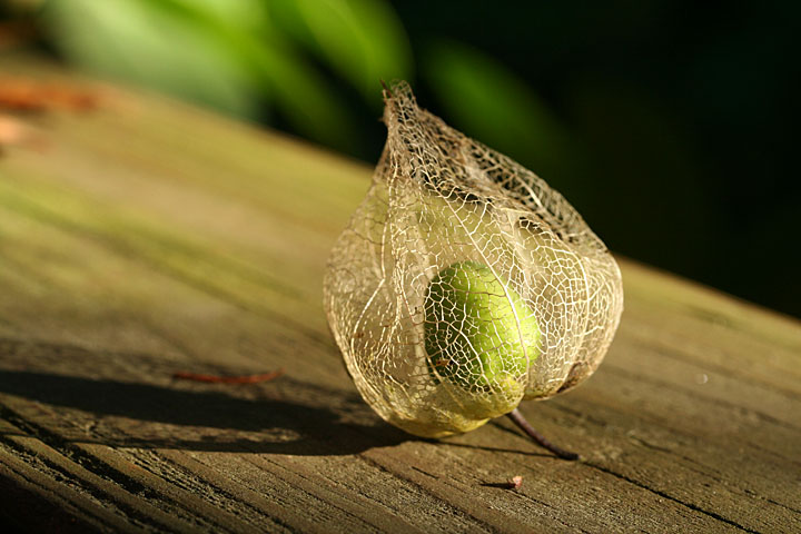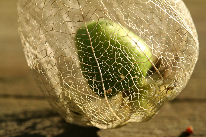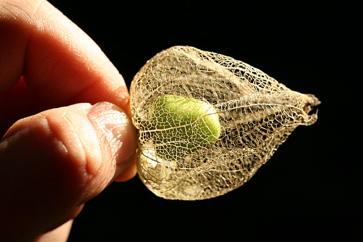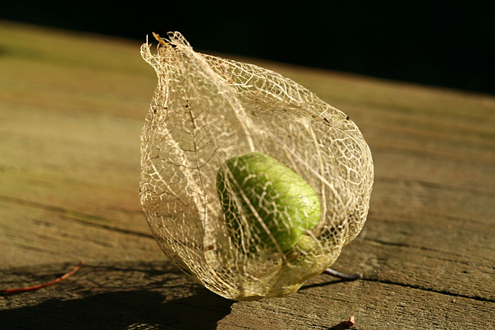 i love leaf skeletons. i always wanted to know how to make them artificially, but so far no luck. i found a tomatillo that had its husk reduced to a skeleton. you can now see how a tomatillo fruit grows inside the husk.