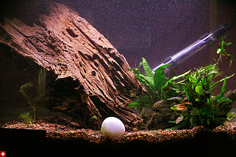 before i could add the glowlight tetras i did a water change on the 7 gallon minibow tank. i got careless and gulped down some dirty aquarium water when i was siphoning it out into the collection bucket. afterwards i boiled the drift wood to kill off any snail eggs that might be hiding inside. the smaller piece i put into the male guppy tank, but the larger piece i submerged into the minibow, which may be a bad idea because now it seems there isn't a lot of swimming room for the tetras and the barb - although there's definitely more hiding spaces. the newly-introduced glowlight tetras seemed genuinely freaked out in their new home, and all of them huddled together in one corner of the tank, shaking with fright and breathing heavily.