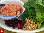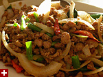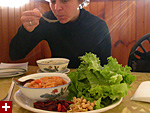 the menu was pretty unique, each item designed with a special code informing the customer the culinary origin (cambodian, vietnamese, burmese, thai, or sometimes just american) as well as the degree of hotness (on a scale of 0 to 3). julie got a thai soup and some chicken dish, while i went with an appetizer of sticky rice rolled up in lettuce plus a plate of spicy phat prik gra pao. the food was okay, but not the taste explosion we were hoping it'd be. portions were generous and we ended up leaving with leftovers.