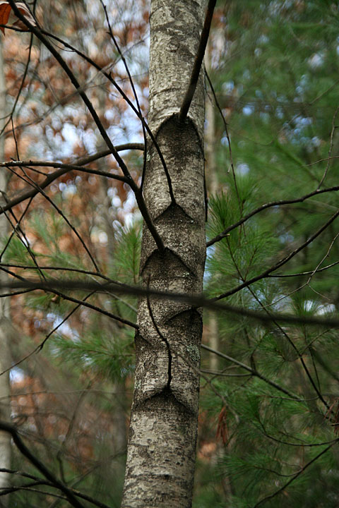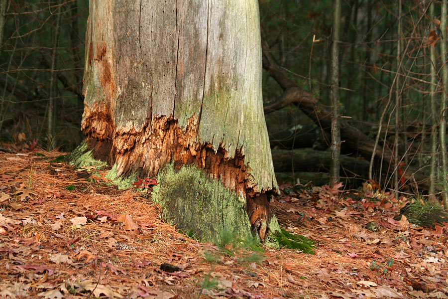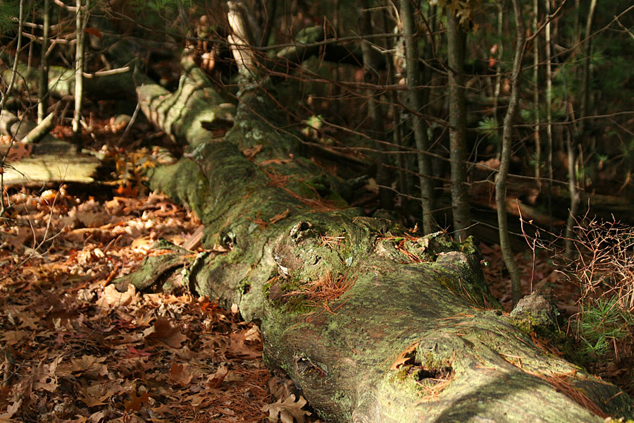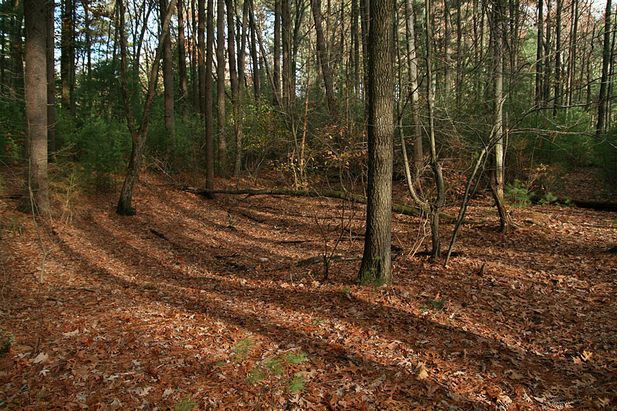 the best thing about naturing in late autumn is there aren't any bugs and the poison ivy have long since succumbed to the frost. no need to spray insect repellent or watch where i'm stepping. most of the deciduous trees were bare of leaves with the exception of oaks, their brown leathery solar collectors rustling in the wind overhead. that brought back a memory from when i was riding down here, that of a large oak leaf hitting me in the face. leaves usually seem so harmless, but not when i'm traveling 45mph+ and a piece of the petal scratches my face as it flies by.