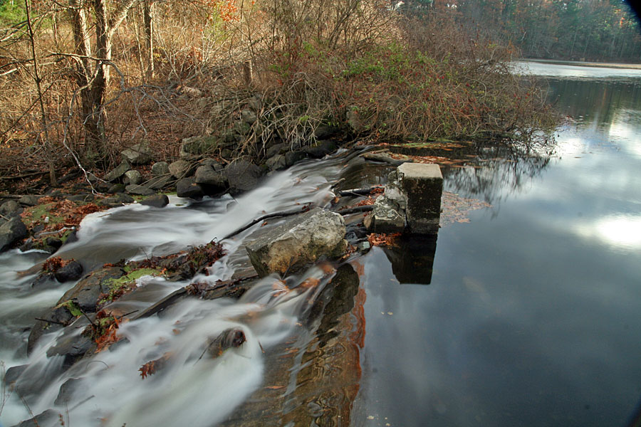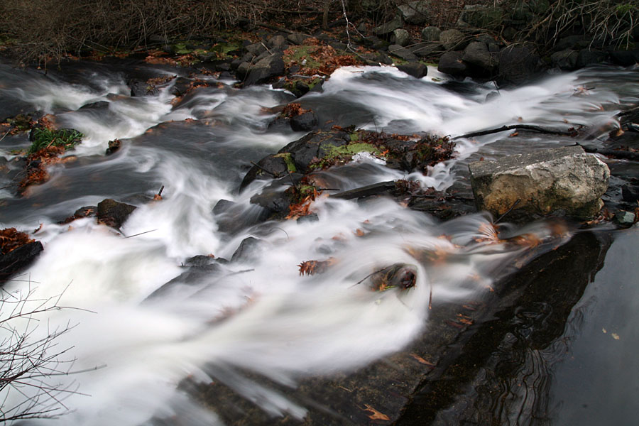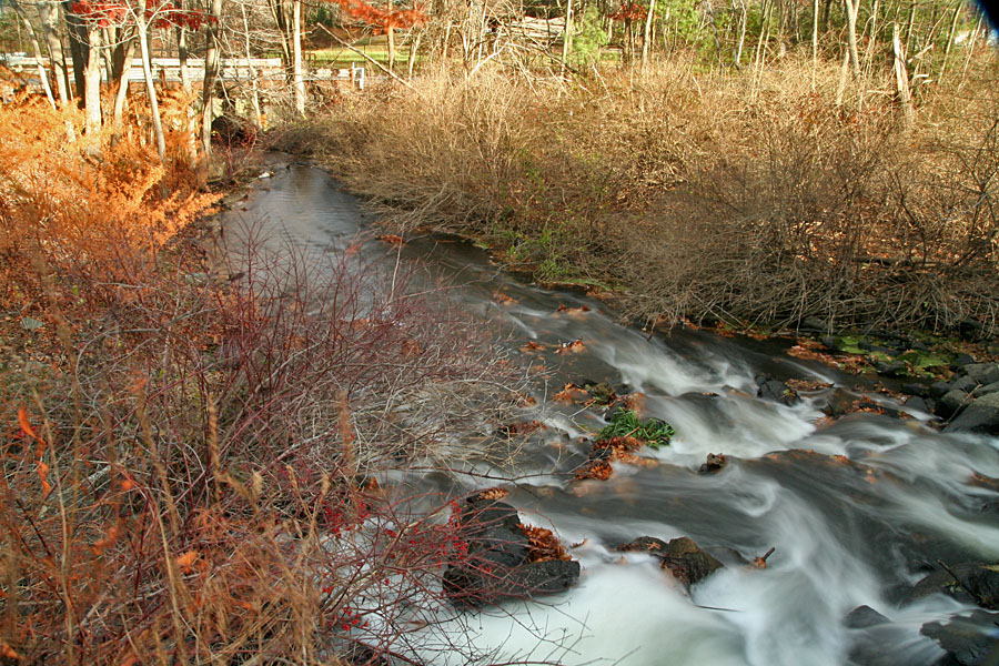 in perhaps the warmest day of the week if not the rest of the year, it gave me the perfect opportunity to do one last spot of naturing. where ever i went, there had to be some running water so i could play around with the neutral density filter i bought earlier this month. i decided to revisit sudbury, back to the hop brook marsh reservation, part of the larger memorial forest preserve. this was my third visit to HBM; i came here during the spring with bruce and my first visit was last year (although the memorial forest i've been to a few oher times before). even though it was the warmest day of the week, the temperature hovered barely above 50 degrees by the time i left the house around noon. the ride was bearable but towards the end it started to get a bit uncomfortable and i could feel my body temperature dropping. thankfully i arrived at my destination before the cold started getting painful.