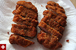 i thought the whole process would be messy - i was imagining hot oil splattering everywhere - but it turned out pretty clean. i think the oil was too hot and the first two cutlets started turning black and hard before