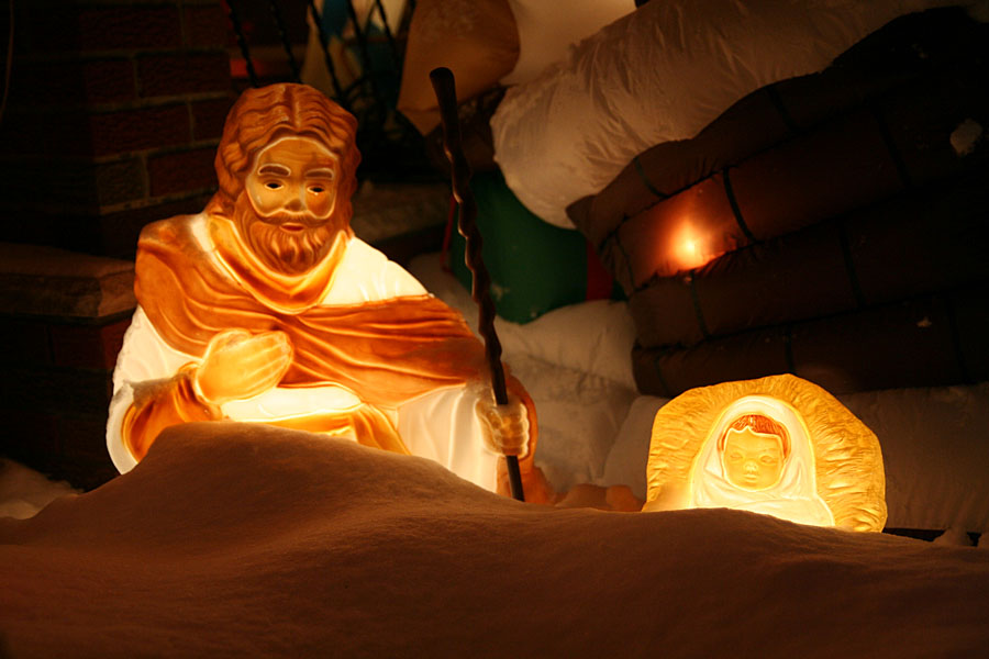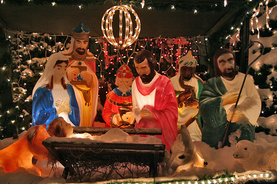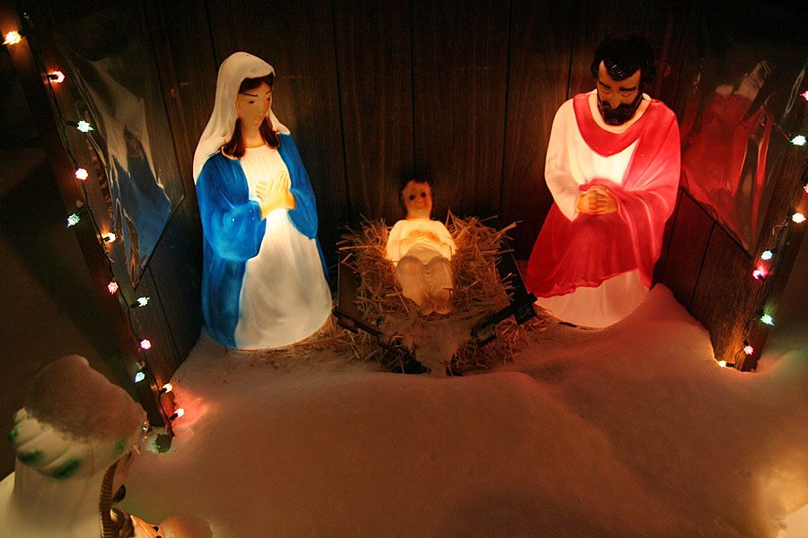 within the manger scene there are many different variations, even though everyone seems to buy the figurines from the same company because they're all the same. i remember hearing stories about people getting creative with the manger scene, using stuffed animals to represent the various participants. if i had the space to set up my own christmas manger scene, i'd definitely go crazy. although it's a religious setup and there's an aura of seriousness about the manger, i'd love to recreate the scene using robots, like a futuristic birth of christ. or maybe more animatronics - i've never seen an animated manger before.