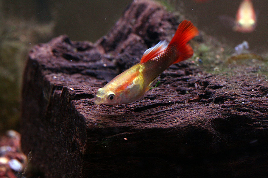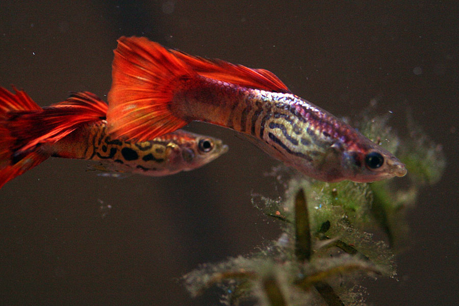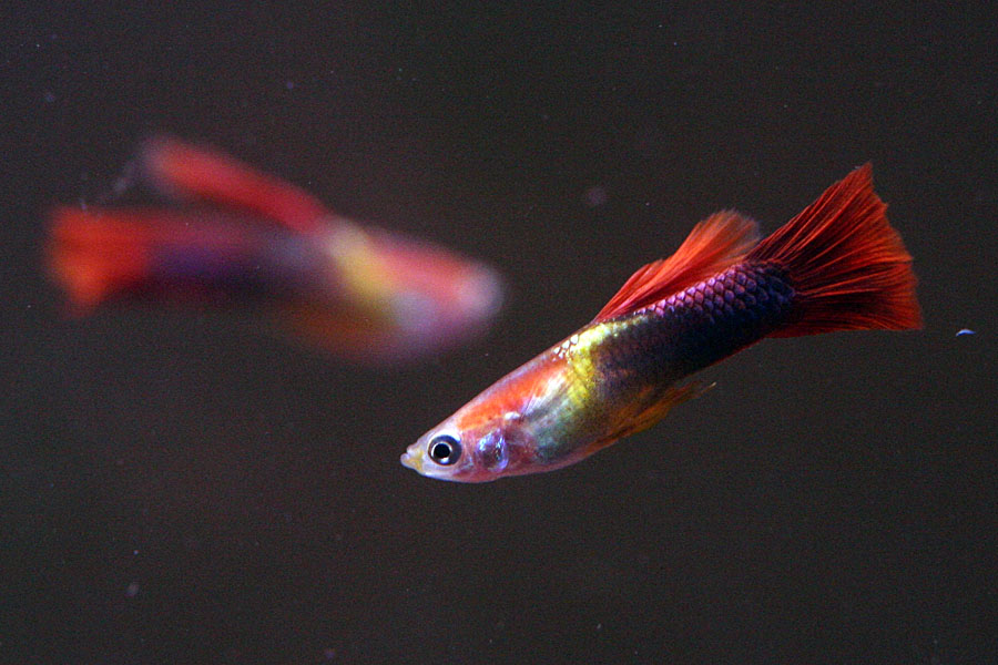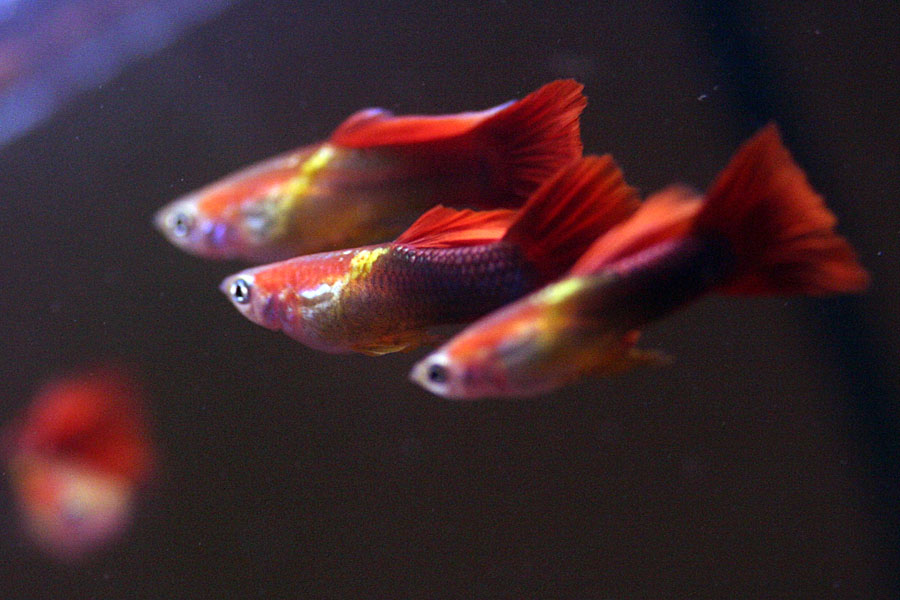 i shot some guppy photos with the camera mounted on a tripod. the head was loosen so i could still easily pan and tilt the camera. the exposure compensation was dialed down to its lowest value and ISO was at 400. aperture was set at 2.8 with occasionally increases to 4.5, while trying to maintain a fast enough shutter speed so the fish won't be blurry. out of 100 shots, only a handful were clear.