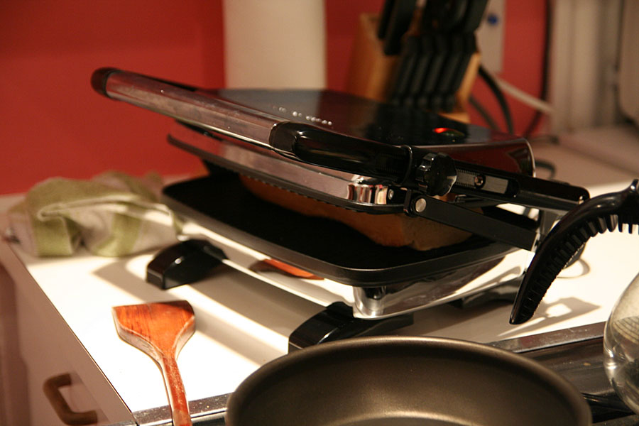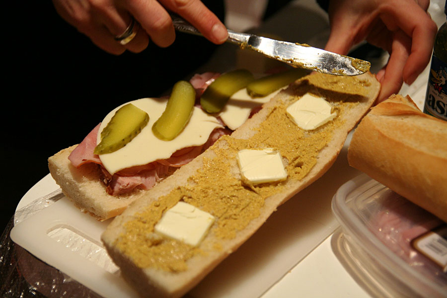 julie dropped by to make cuban sandwiches. we watched project runway and a sneak preview of make me a supermodel.