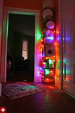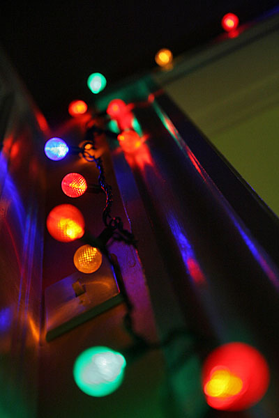 i've decided to discreetly put up my christmas lights inside the house, for my own personal enjoyment. they just seem to make the place appear more festive, particularly during these dark winter days. i can't wait for my other lights to arrive: i'm going to string them all up and totally go crazy before putting them to use as grow lights.