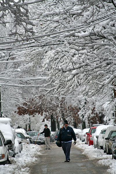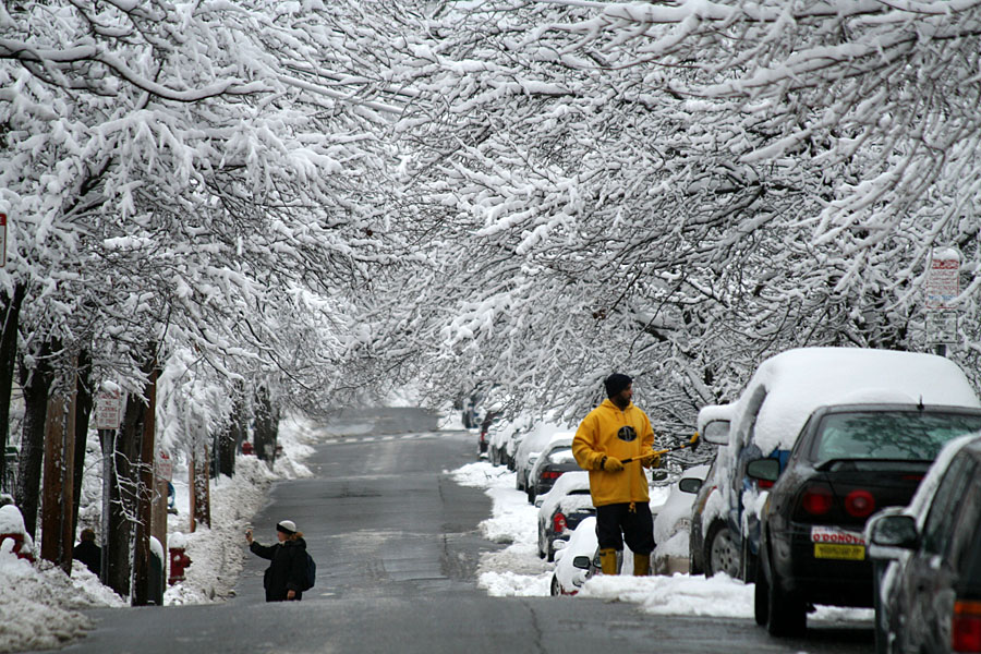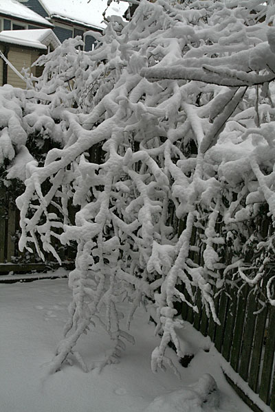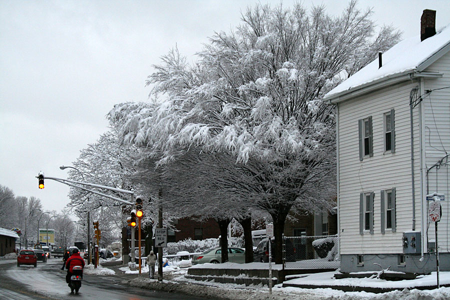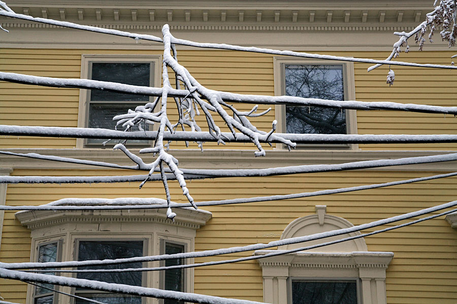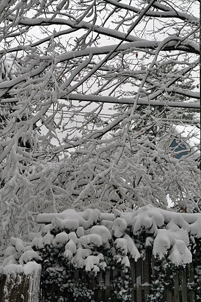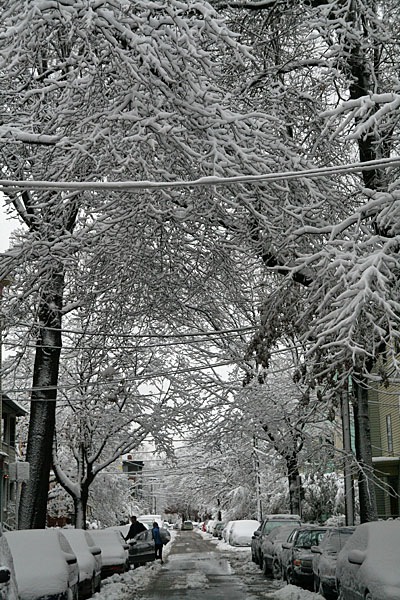 the beauty of snow is it falls silently. and one of the great wintertime joys is waking up and seeing the landscape covered in fresh snow, which was the case this morning. although nowhere as much as the snowstorms back in december, we still got 5-7" here in cambridge. it wasn't the light fluffy stuff either, but rather the wet heavy snow, which coated all the trees like the whole world was dipped and deep fried in white tempura batter.