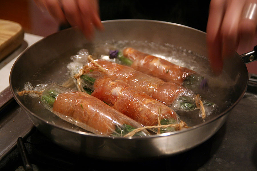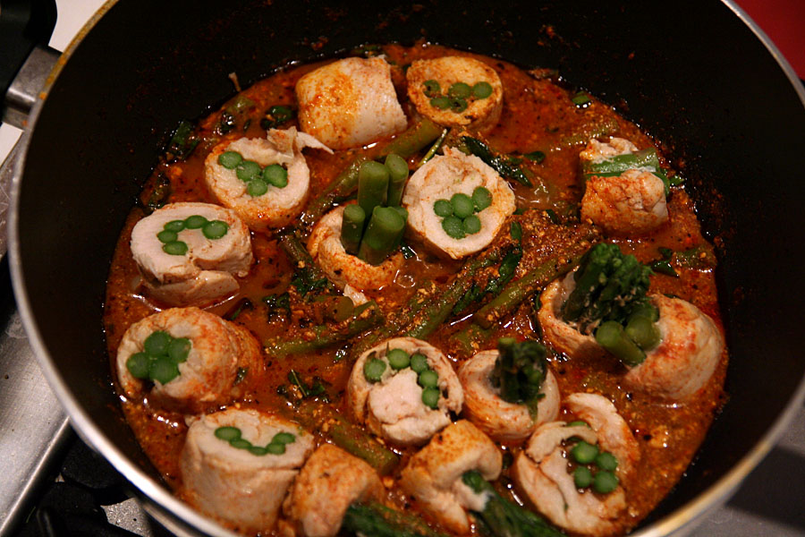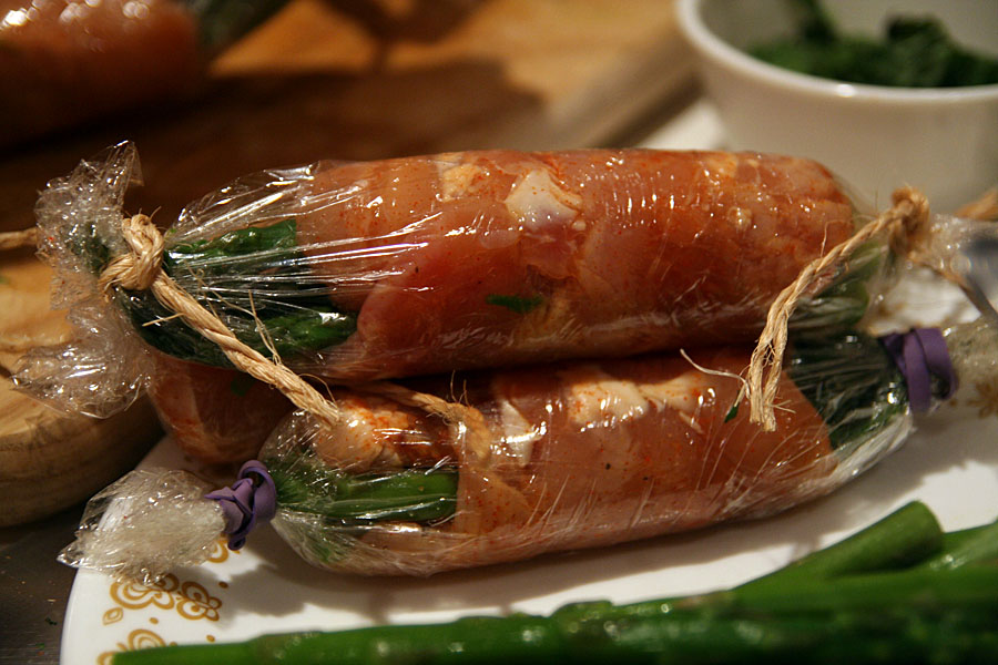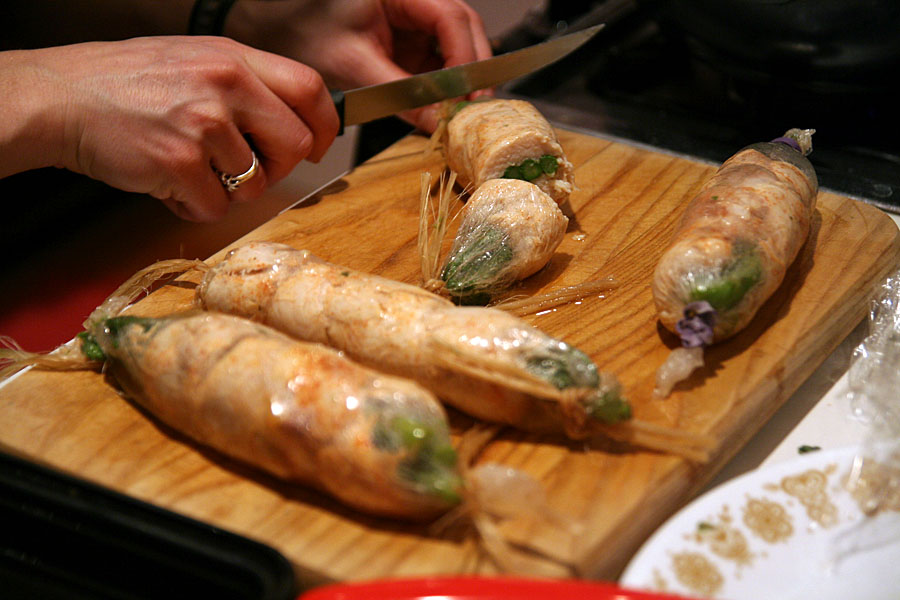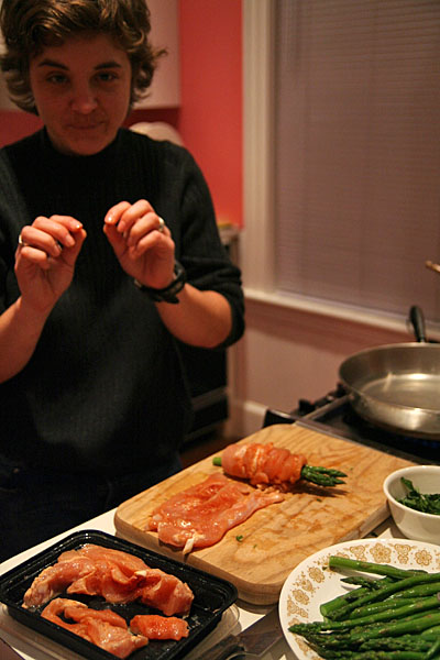 julie came over in the evening and made some red curry asparagus chicken rolls. i thought she meant rolls like a burrito but instead it was more like sushi rolls, except chicken and asparagus instead of fish and rice. i gave her a belated christmas gift of a PCI USB 2.0 card.