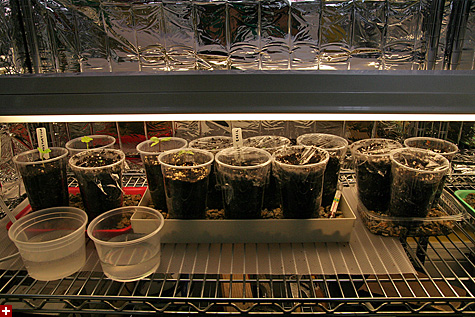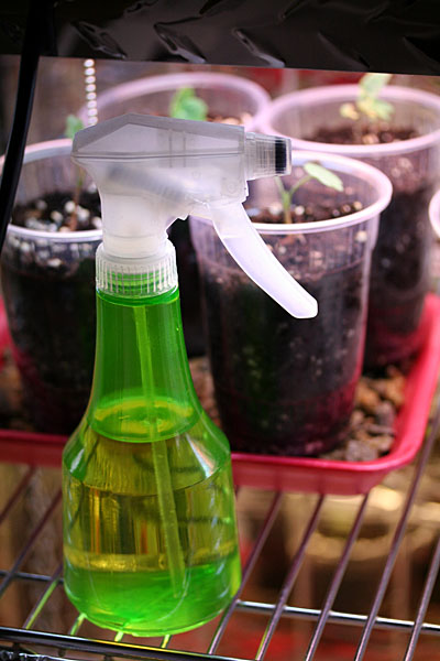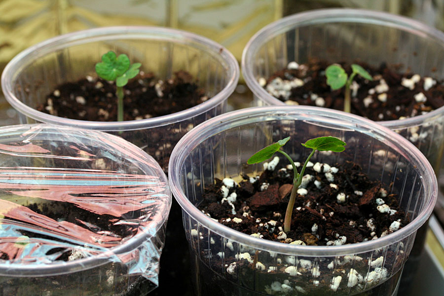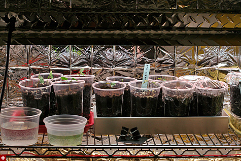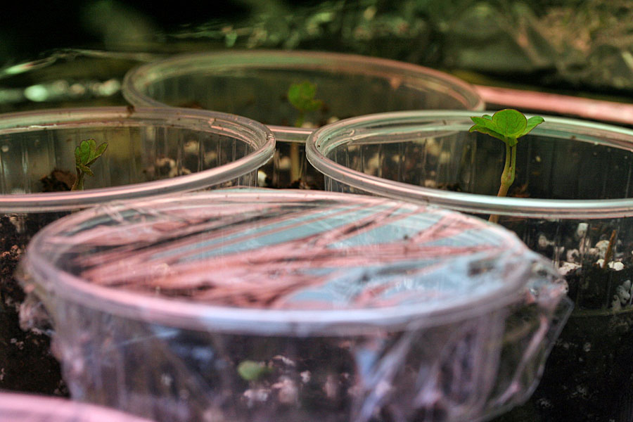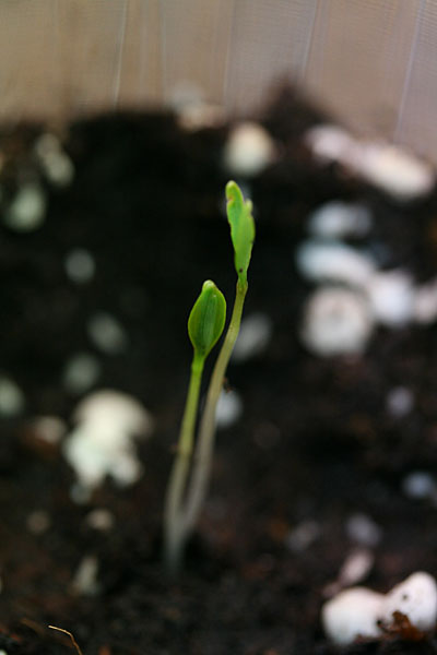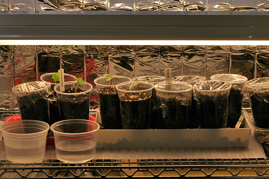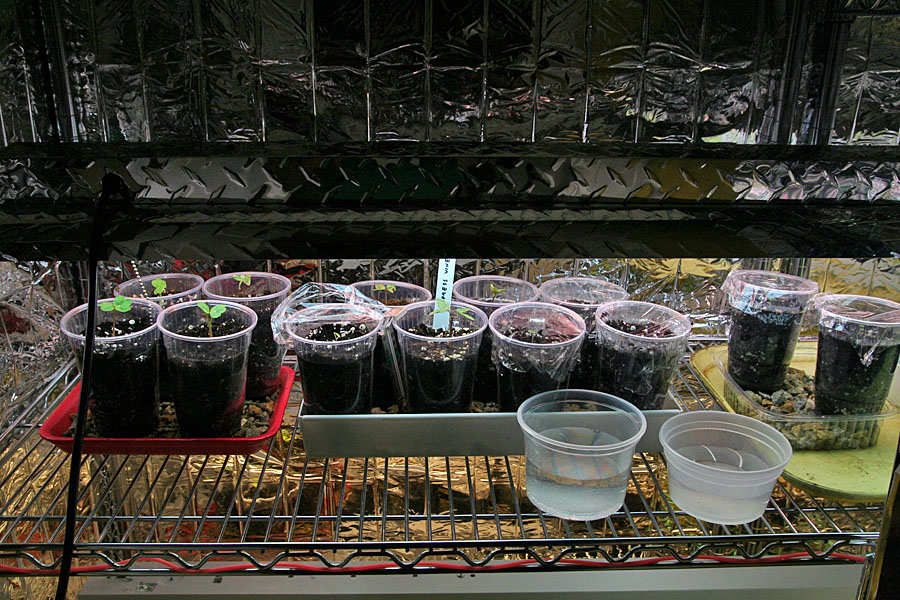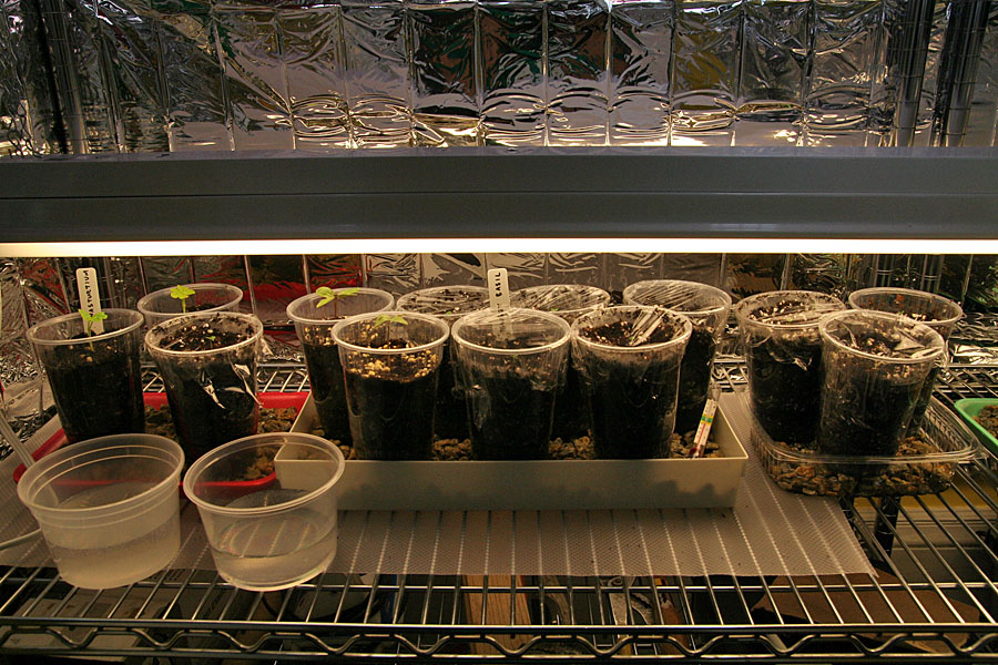 went to bed a little late last night; my self-discovered natural sleep remedy of listening to the BBC on the radio to lull me unconscious didn't quite work out. the result was i got out of bed an hour later than originally scheduled. the seed nursery revealed two containers with cilantro seedlings. i immediately moved them into the grow closet. so the new updated scorecard is: