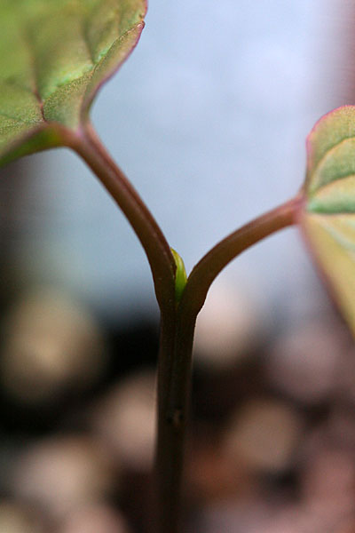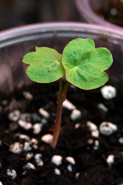 one of the two cups of cilantro had straightened out. i expected more cilantro to sprout but so far i only have 3 seedlings, and the remaining two cups show no activity yet. besides warmth, i wonder if they (both cilantro and parsley) also require some more light to germinate. i could've also buried them too deeply. elsewhere, the cypress vines are starting to develop leaf buds as well.