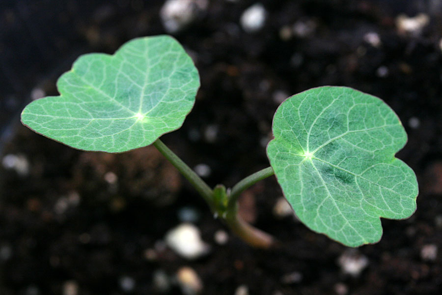 a final check of my plants around midnight showed some nasturtiums bending inwards instead of growing straight up. the reason could be the lights are too low so i raised both of them a few inches so they're 4-6" above the plants. the nasturtiums are also showing bud formations which will develop into the first true leaves.