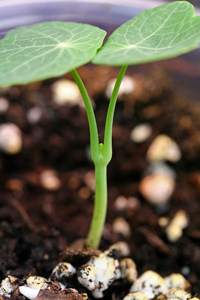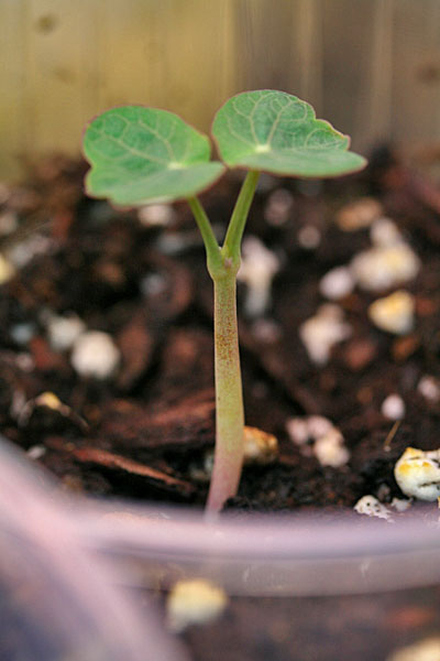 it never dawned on me until today that perhaps the reason why there's a difference between the nasturtiums growing on the top shelf compared to the ones growing on the bottom shelf is because they might be two different varieties.