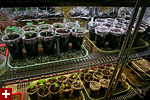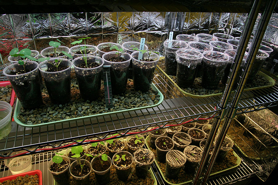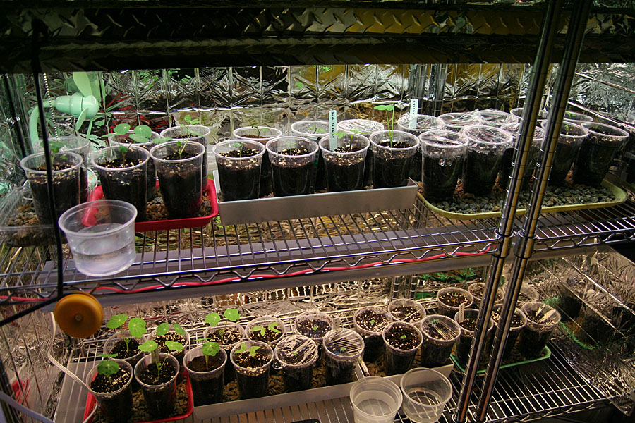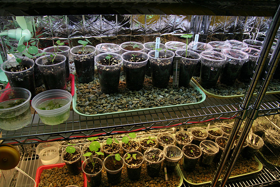 i decided to consolidate all my smaller trays into several large cafeteria-style trays. i poured gravel onto their surfaces and added warm water. i also went with a 3 row configuration, hoping to gain more grow space in the process.