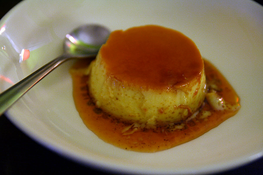fried oyster and kimchee pancakes. afterwards we came back to my place. my sister and i presented our shared gift, a national geographic genographic project kit to test genetic lineage. for dessert we had the flan i made last night. although it's hard to taste the cinnamon (which all pretty much floated to the top), i think it adds an extra dimension to the flan.