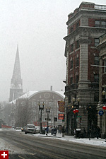 after shoveling my sidewalk, i grabbed my camera and took a walk down to harvard square to look for photo opportunities. the snow was falling at a pretty good clip and i was afraid my camera would get damaged; but i've taken it out in far worse conditions (pouring rain) so i wasn't worried too much. surprisingly, and a bit disappointed, harvard square was pretty empty. most people hurriedly went to where they were going and those who could probably took the day off. there was so much snowflakes all around that the photos i took looked grainy.