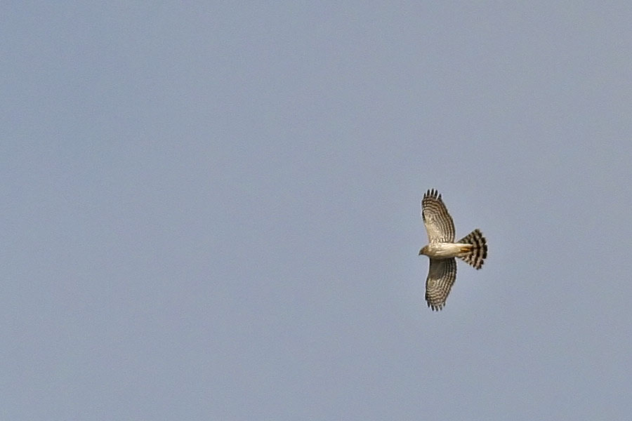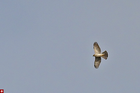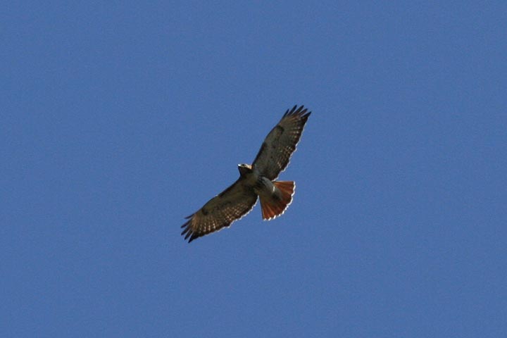 i'd hoped that i was seeing a kestrel, because i knew at least one lives around the alewife/fresh pond area. it was too high to get a good look but from the way it was flying in circles i knew it was a hawk of some sort. i snapped a few pictures with the telephoto lens fully extended. once i got home and saw them, i thought it was just a common red-tailed hawk. but after consulting with my field guide, turns out it was a red-shouldered hawk (which i've never seen before). although it's called a "red-shouldered" hawk, the distinguishing feature was actually the banded tail (absent in the red-tailed hawk).