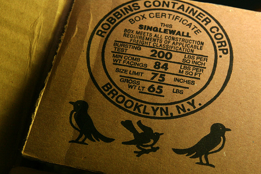 my order of fluorescent bulbs arrived today. being that these glass tubes are sort of fragile, i was curious to see how they shipped them. the lights were wrapped in a tight coil of inflatable plastic balloons then surrounded by a layer of styrofoam peanuts inside the cardboard box.
