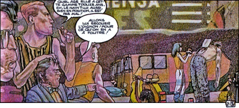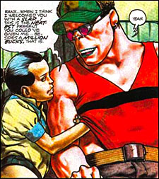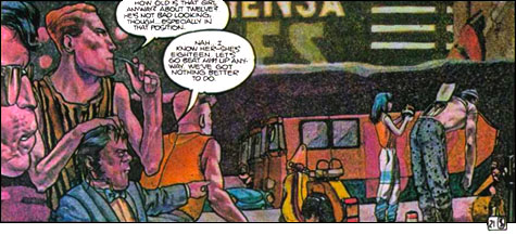 growing up in the 80's, i remembered seeing the covers for ranxerox in the underground section of the comic book stores. i was a little too young for "adult" comics but 2 decades later i'm finally catching up to what i've been missing. italian artist tanino liberatore first created the character of ranxerox in 1978, but it wasn't until 1983 before there was an english version of the series. the story takes place in a dystopian future; ranxerox is a frankenstein-inspired robot who has an underage female lover named lubna. the tales are pretty extreme: besides cavorting with an underage girl who just also happens to be a junkie, panels display scenes of ultraviolence, rape, strange fetishes, drugs, gangs, snuff movies, and child abuse.