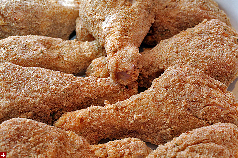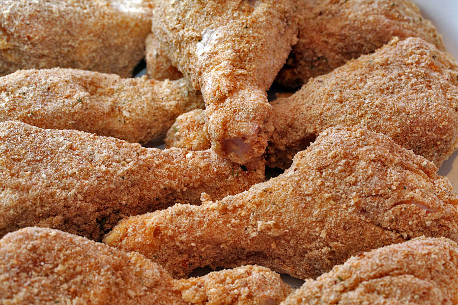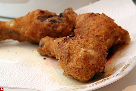 the final result looks delicious, but tastes otherwise. colonel tony's secret recipe involves plain bread crumbs, but they don't have any flavor. i didn't add any seasoning either (no salt, no ground pepper), so that further added to the blandness. i also don't know if i fried it right. i basically waited until blood was seeping out of the chicken bones and marrow started oozing out. it didn't seem particularly wholesome and i probably lost most of my appetite because of it. and even though i cooked with a window open (freezing!) and a fan blowing out, the smell of oil will permeate through my house for the next few days. all this effort for a little reward. it would've probably been easier just visiting the local KFC.