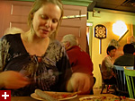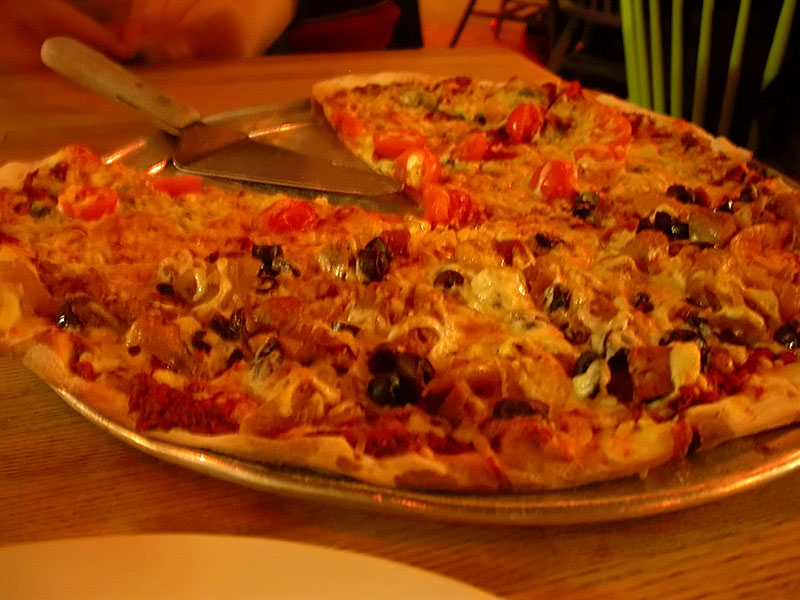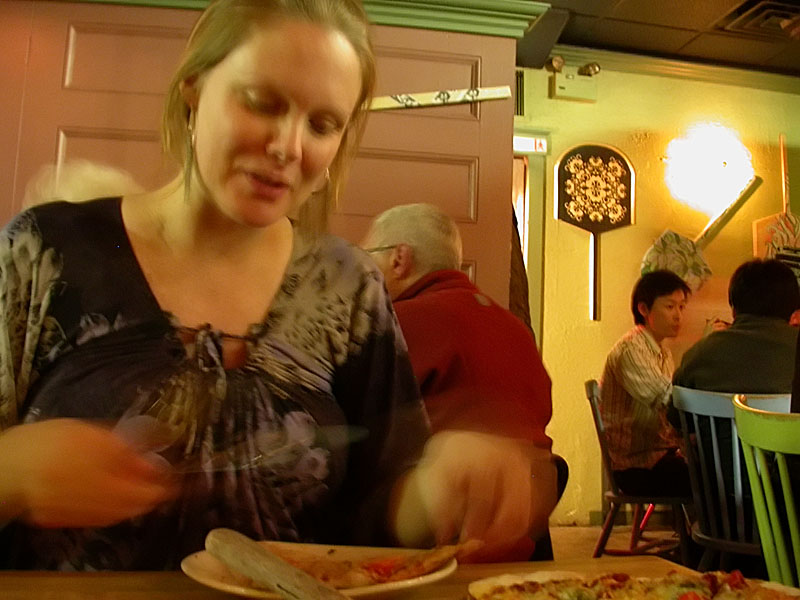 after the movie, eliza and i walked to emma's pizza for a late dinner. the place was crowded but we were lucky enough to only have to wait just a few minutes before being seated.