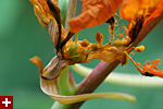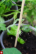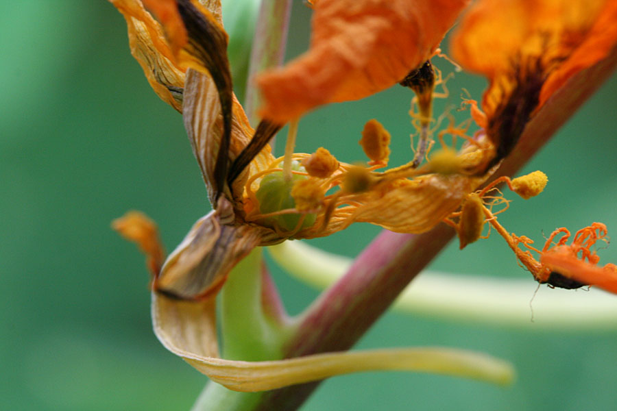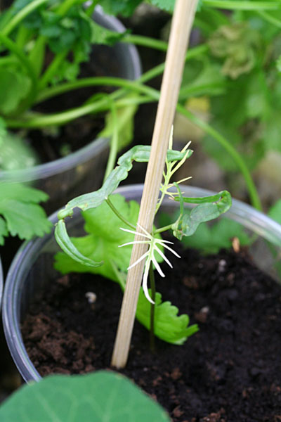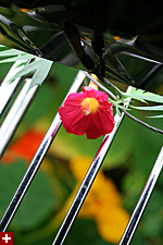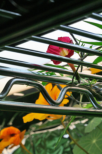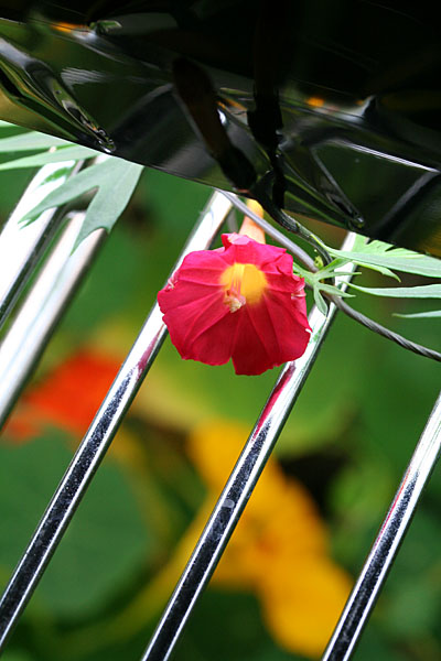 unlike morning glories, cardinal climber flowers last longer than a single morning. unlike nasturtium flowers however, cardinals last for just a single day before they wilt. fortunately they're prodigious bloomers, and i'll probably have some new flowers by tomorrow.
