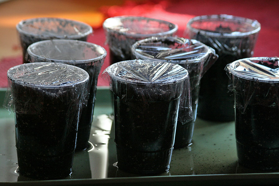 some more planting today, this time 8 cups of tomatoes, 2 seeds each. half of them with recycled dirt, the other half with fresh grow mix. a solicitor paid me a visit this afternoon; i was going to ignore her but she was persistent, ringing my bell nonstop (i was watching television, she probably heard me). she was canvassing for a JP women shelter. i wasn't going to give any money (i normally don't donate to solicitors, no matter how righteous the cause), which was further exacerbated by the fact that she was disturbing my weekend. and how could i really be sure this was a legit cause? there'd been a recent slew of fake door-to-door activists here in cambridge. she gave me a flyer anyway, and went ahead with her prepared speech, while i pretended to read the literature.