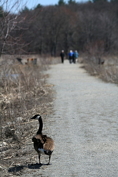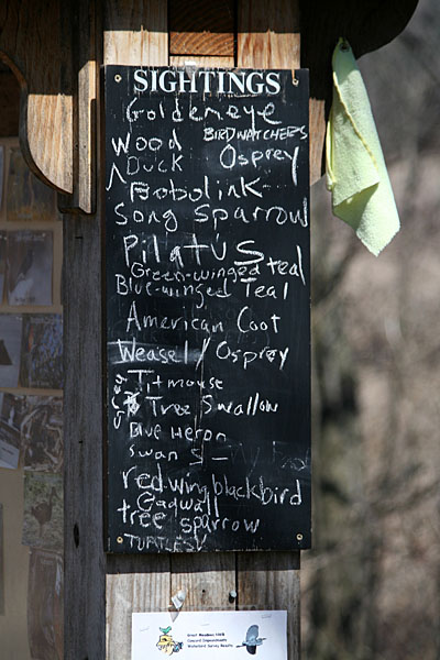 the spring migration of birds is just starting so there wasn't a lot to see at great meadows: tufted titmouse, cormorant (i think that was what was making this awful croaking sound), canada geese, wood ducks, tree swallows, great blue heron, downy woodpecker, mute swan, robin, song sparrow, grackles, red-winged blackbirds, and an unidentified hawk circling briefly in the air.