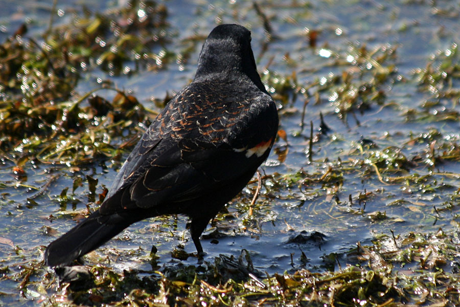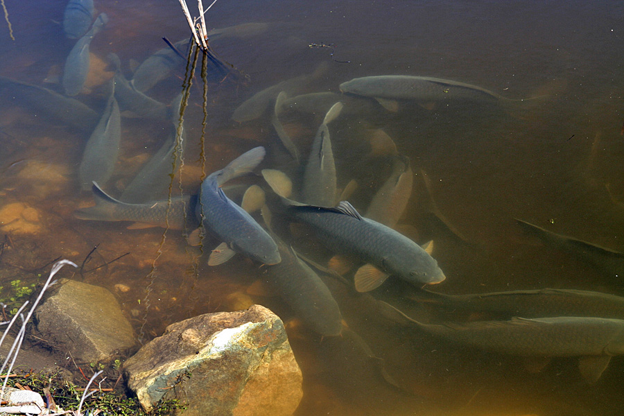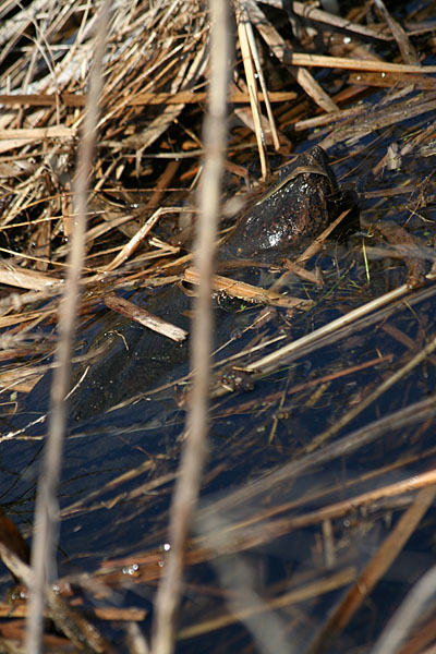 when bruce and i visited great meadows late last april, the place was flooded. we saw very little but one thing i remembered was all the splashing caused by jumping carps (possibly for mating reasons). there was some splashing today but nothing like what it was last year. nevertheless, there was definitely carps in the water. using my polarizing filter to see through the reflection, it was almost scary how many there were. and they're big too, each one at least 2 feet long if not bigger.