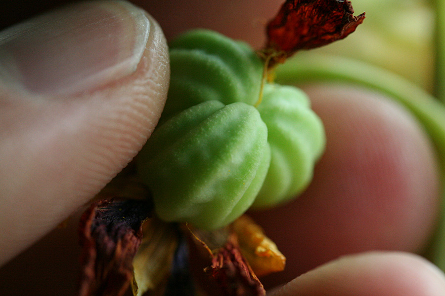 instead of thinning out the tomato seedlings, i transplanted a few to empty cups. since these will eventually live outside, i figured any extras i can just give them away once the weather gets warm enough to plant in the garden. i noticed this a while back, but i think the nasturtium flowers that are developing into seeds, each bundle actually contains 3 seeds. when they'll fully ripen i still don't know, but i hope soon enough so that once my other seedlings start to grow, i can reclaim the shelf space.