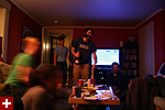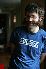 i first made a quick delivery of avocados to my parents before going to central square. since i didn't have lunch yet, i got a large no.6 spicy chicken sandwich combo from wendy's before arriving at elias and amanda's place. elias and i originally both worked at the screen house design department. he was one of the youngest employees; while most of us were in our mid to late 20's, he was fresh out of college when they hired him. so to see him now turn 30 years old is a milestone not only for him but for me as well. to mark this occasion, he had kept a ginormous winter beard which he promised not to shave off until his 30th birthday. so dedicated was he to this cause that he kept his beard even on his recent tropical island vacation. when i met him today, he had already trimmed a good chunk of his former beard, leaving behind a shaggy handlebar mustache (an intermediate stage) straight from the industrial age. to assuage the female participants of his annual movie marathon, he purposely injected more "chick flicks" into his lineup, eschewing the normal selection of action, horror, and weird. for each time slot between noon to midnight (a total of 6), audience could vote for either the girls' movie or the boys' movie.