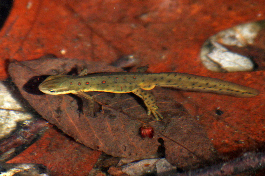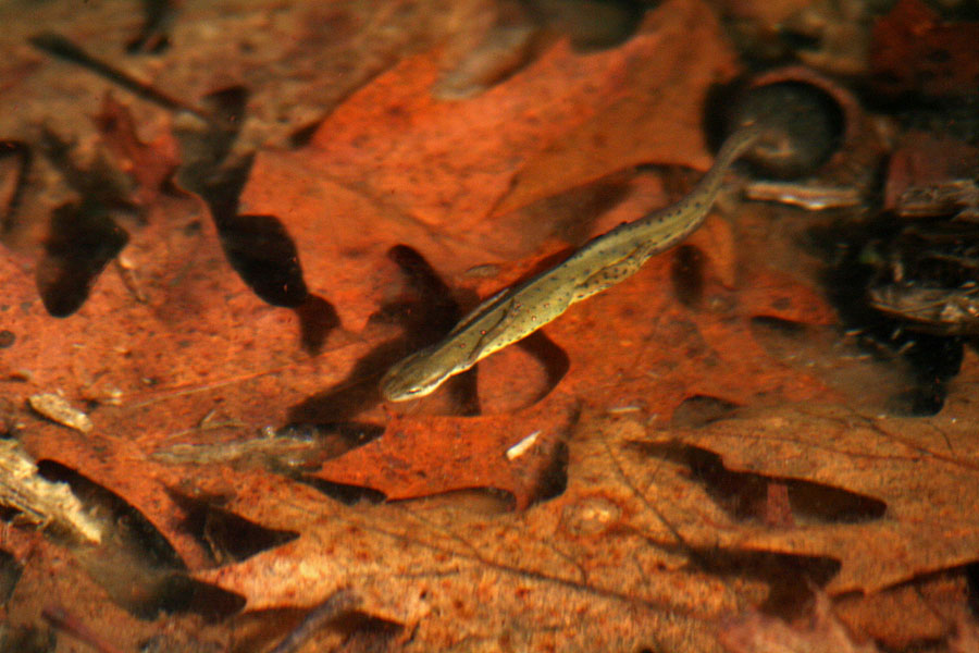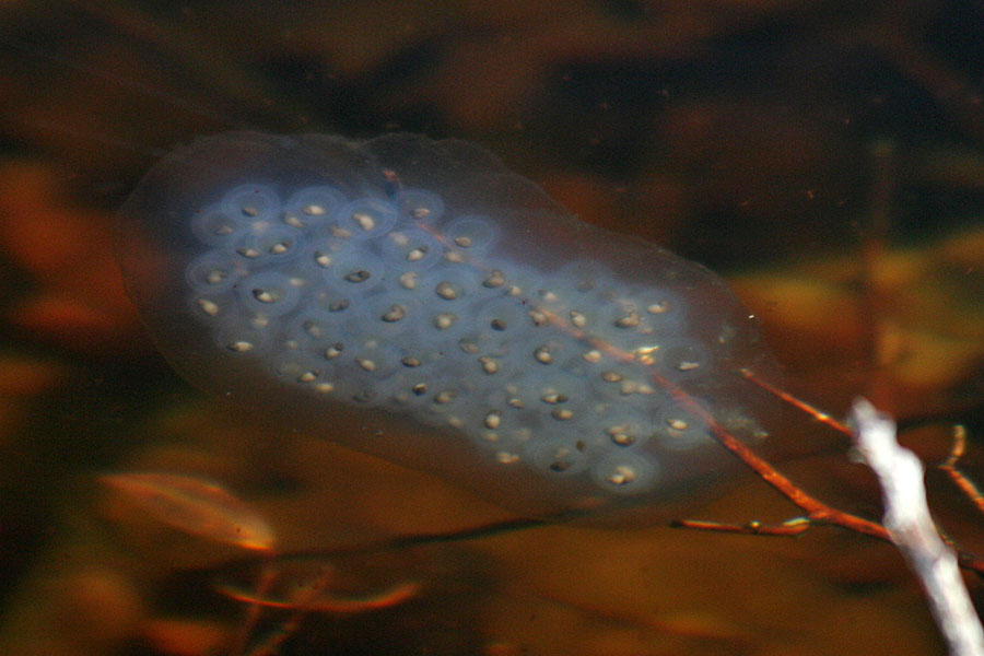 the place didn't disappoint as the pool was stocked with newts. i easily snapped 500 photos, but most of them lack clarity because of the refraction of the water. with so many newts, there must be eggs so i tried looking for some. what i didn't realize at the time was newts don't lay their eggs in an egg mass, but rather deposit them individually onto plants. however, i did find a large mass of eggs. they weren't frog eggs (this is what frog eggs look like), so they're definitely salamanders. could they be the eggs of the elusive yellow-spotted salamanders? i've only seen them one other time, and it was in the dark, but it's a very likely possibility.