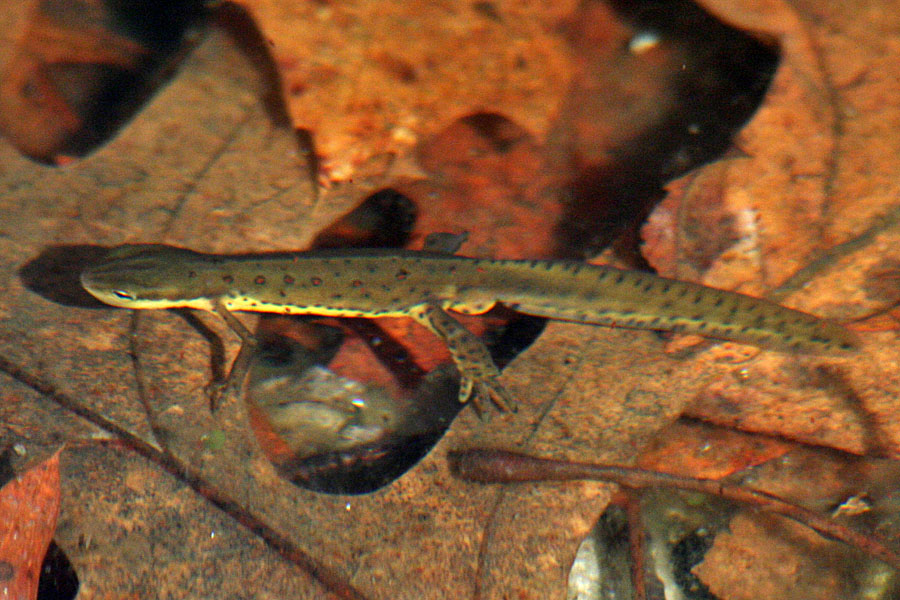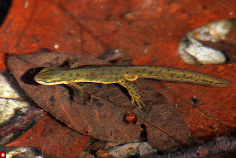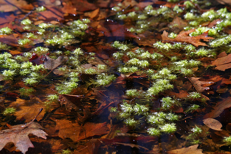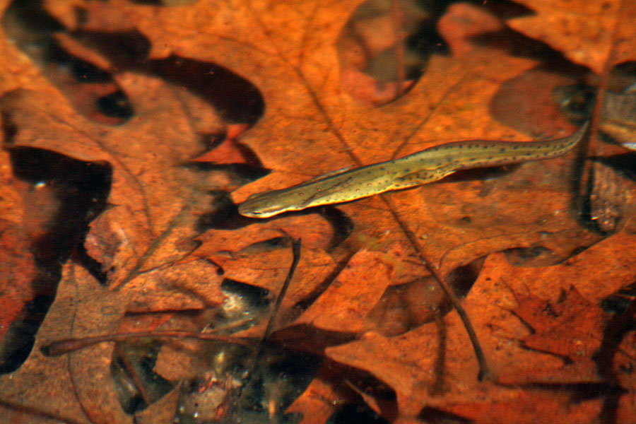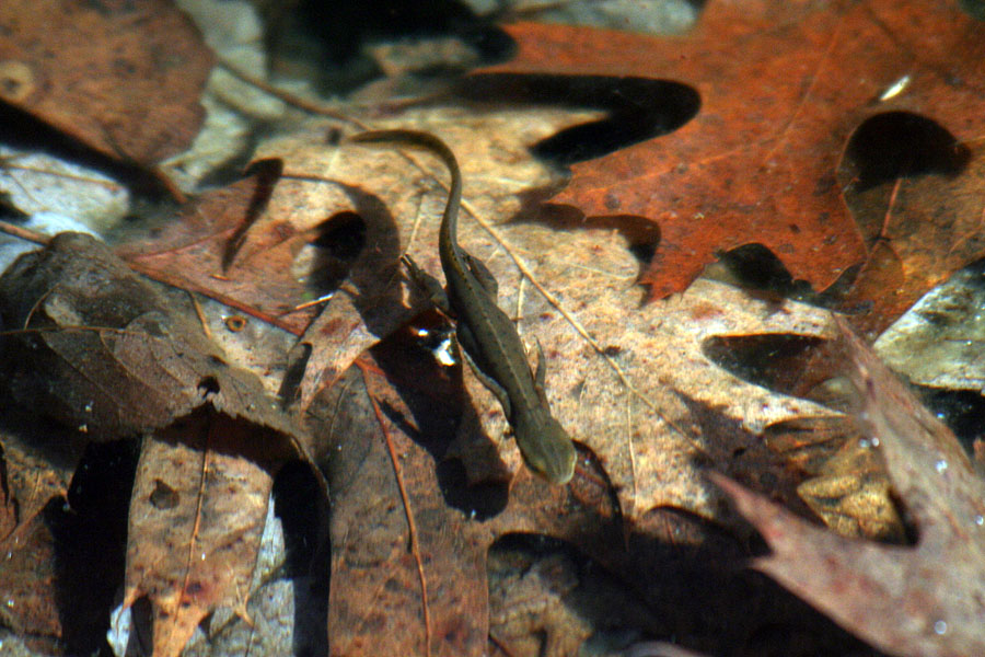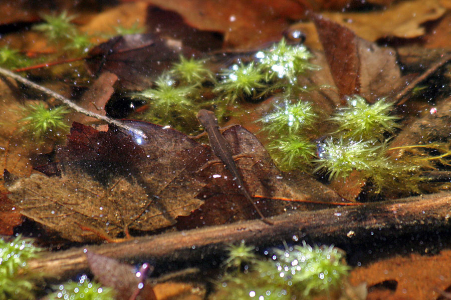 and found the head of a sphagnum swamp. standing along the edge of the swamp, it wasn't long before i spotted my first newt, swimming between the submerged leaf debris that gave the water a reddish tint. i stayed there for a bit, waiting for the newts to appear. as interesting as it was, this wasn't the place i remembered from last time. i so made it back out to the trail and continued looking for the lost vernal pool.